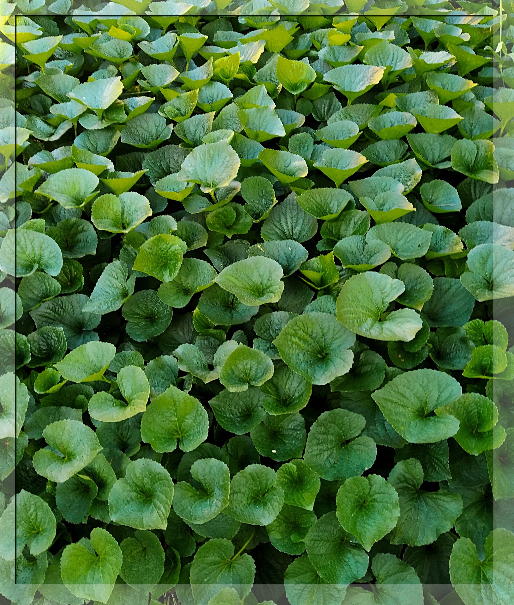 Рослина дає типово фіолетове листя круглої та серцеподібної форми, зі злегка зазубреними краями.