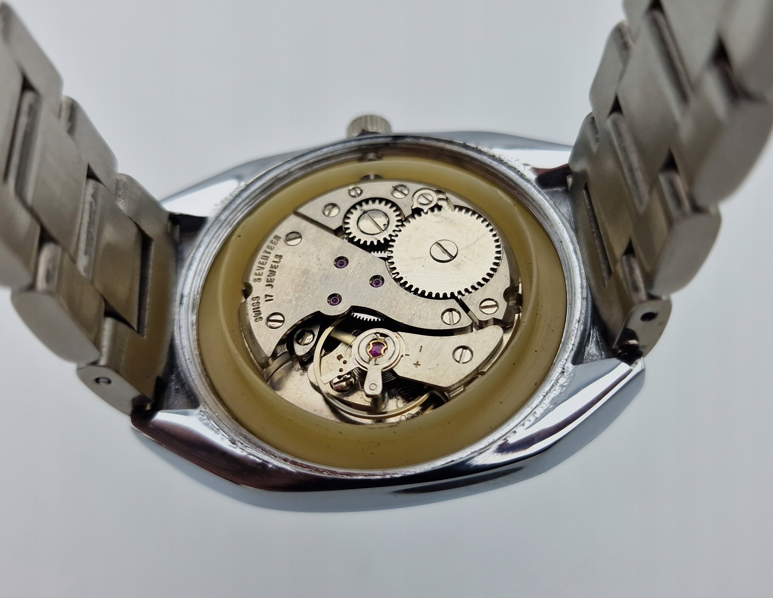 - Механізм спостерігати за 17 каменями, з швейцарською кришкою. За механізмом підписи порушені: " сімнадцять 17 коштовностей, швейцарські" . Механізм на гарній прогулянці, у відмінному стані.
