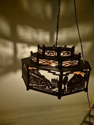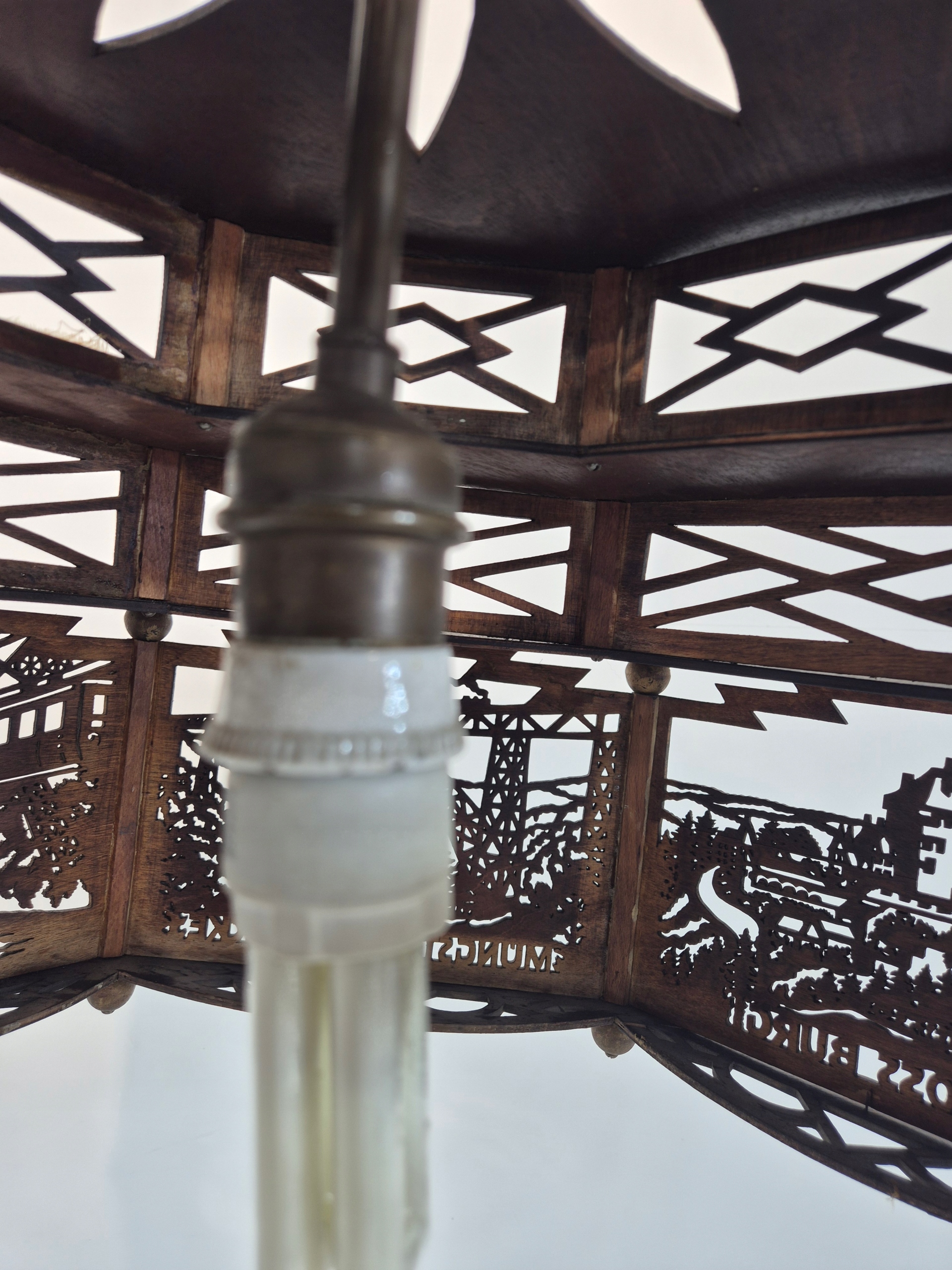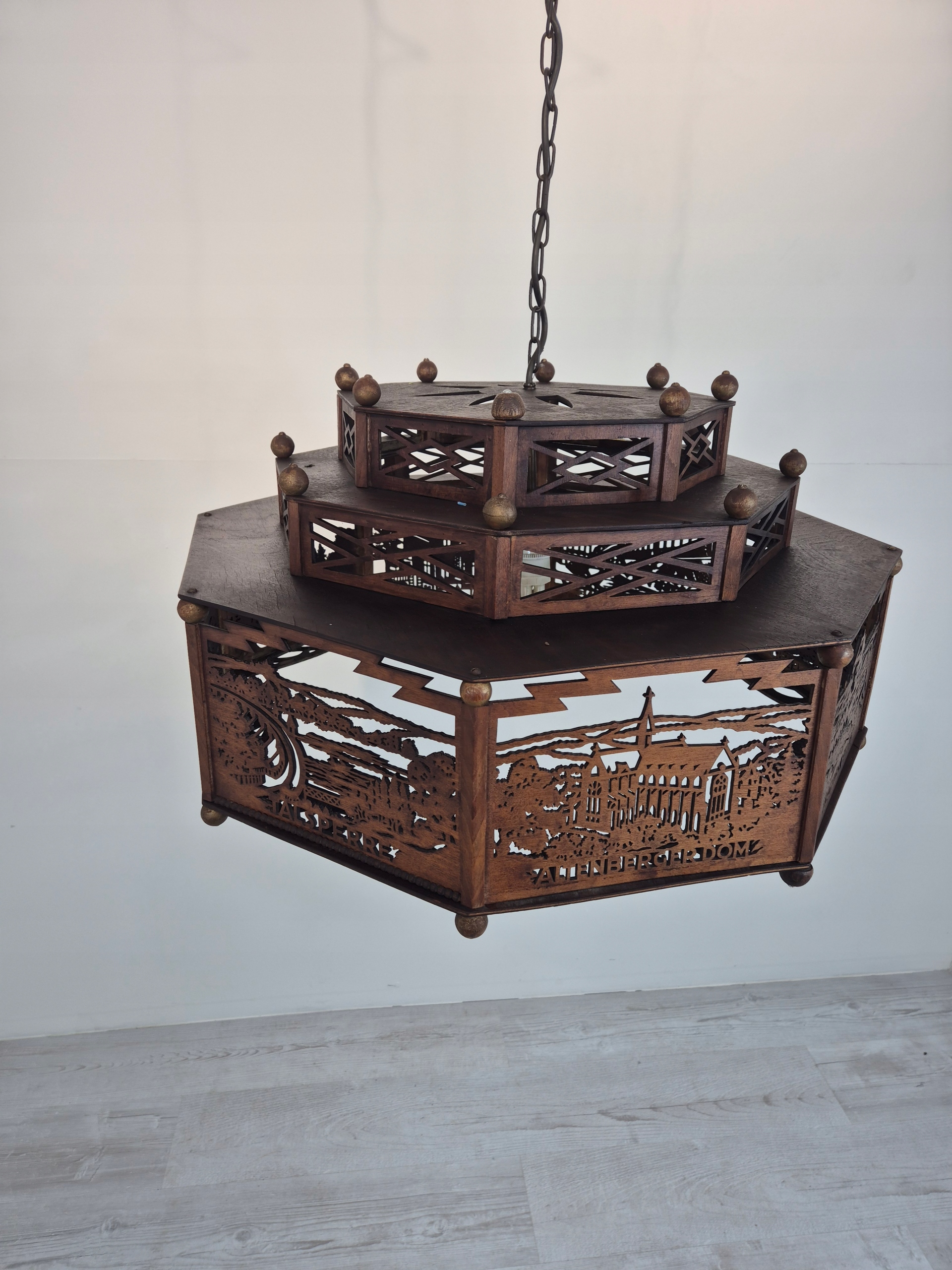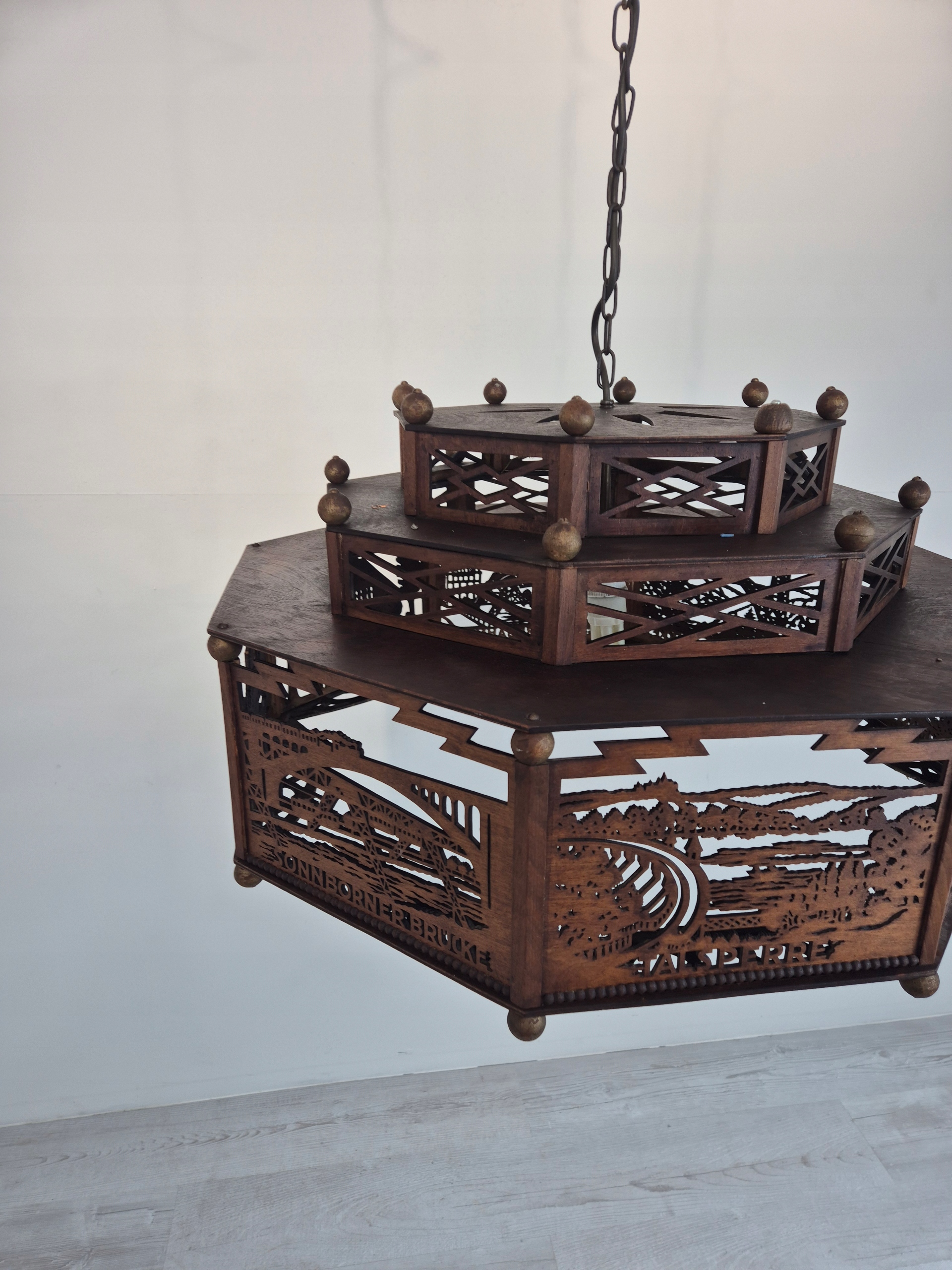 Унікальний дерев'яний стельовий/підвісний світильник з ажурними мотивами