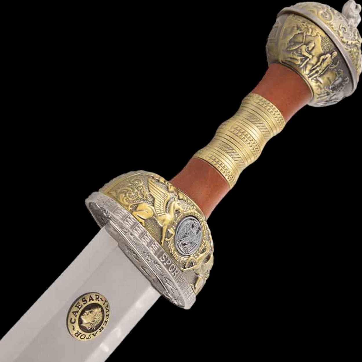 Цільна копія імператорського гладіуса Юлія Цезаря може перенести вас у III століття до нашої ери. Саме тоді ця зброя була спорядженням римських легіонів. З часом і розвитком військових технологій дизайн імператорського гладіоні змінювався. Наша копія гладіуса Юлія Цезаря є вірним відтворенням оригіналу цієї чудової зброї.