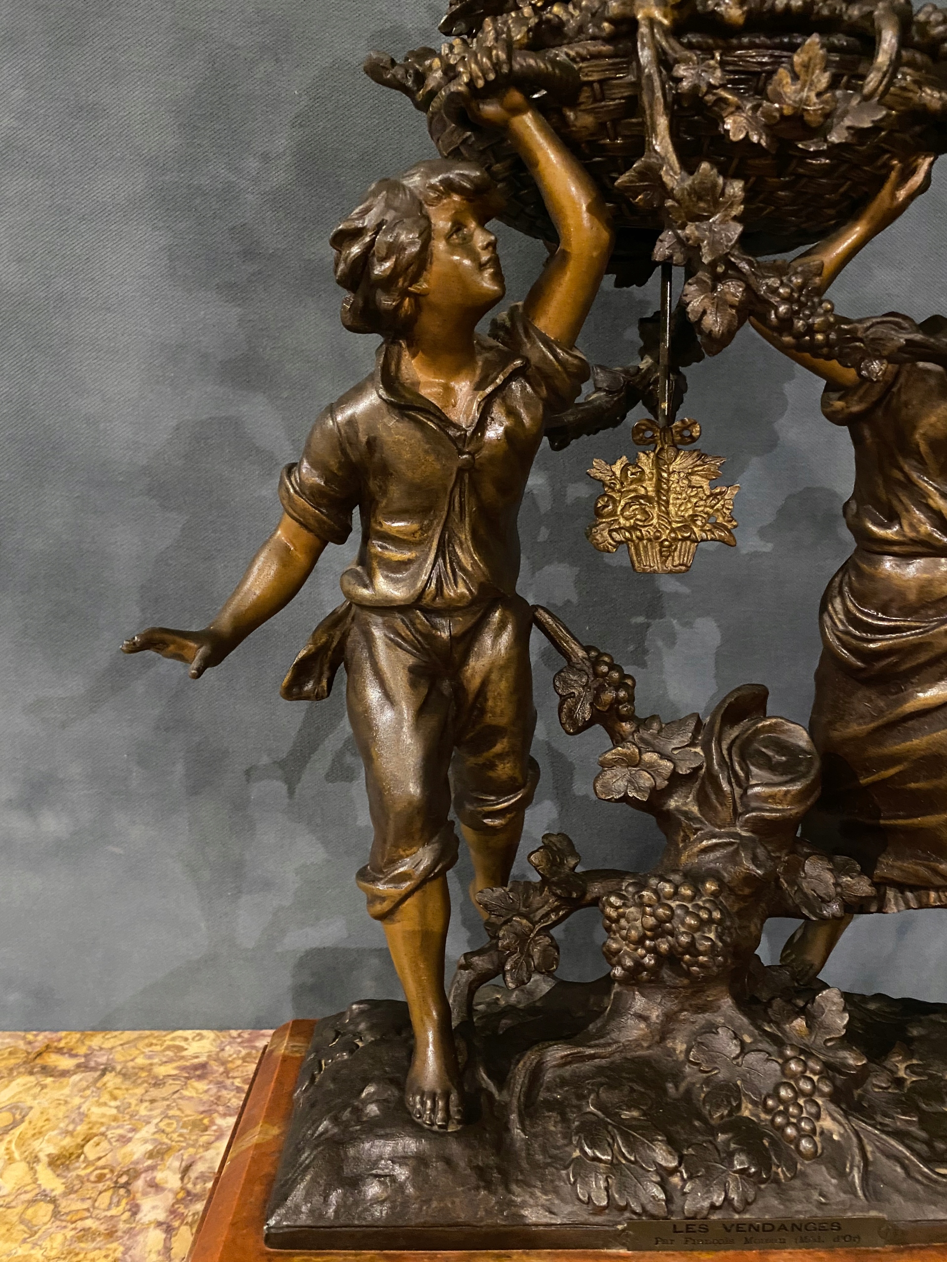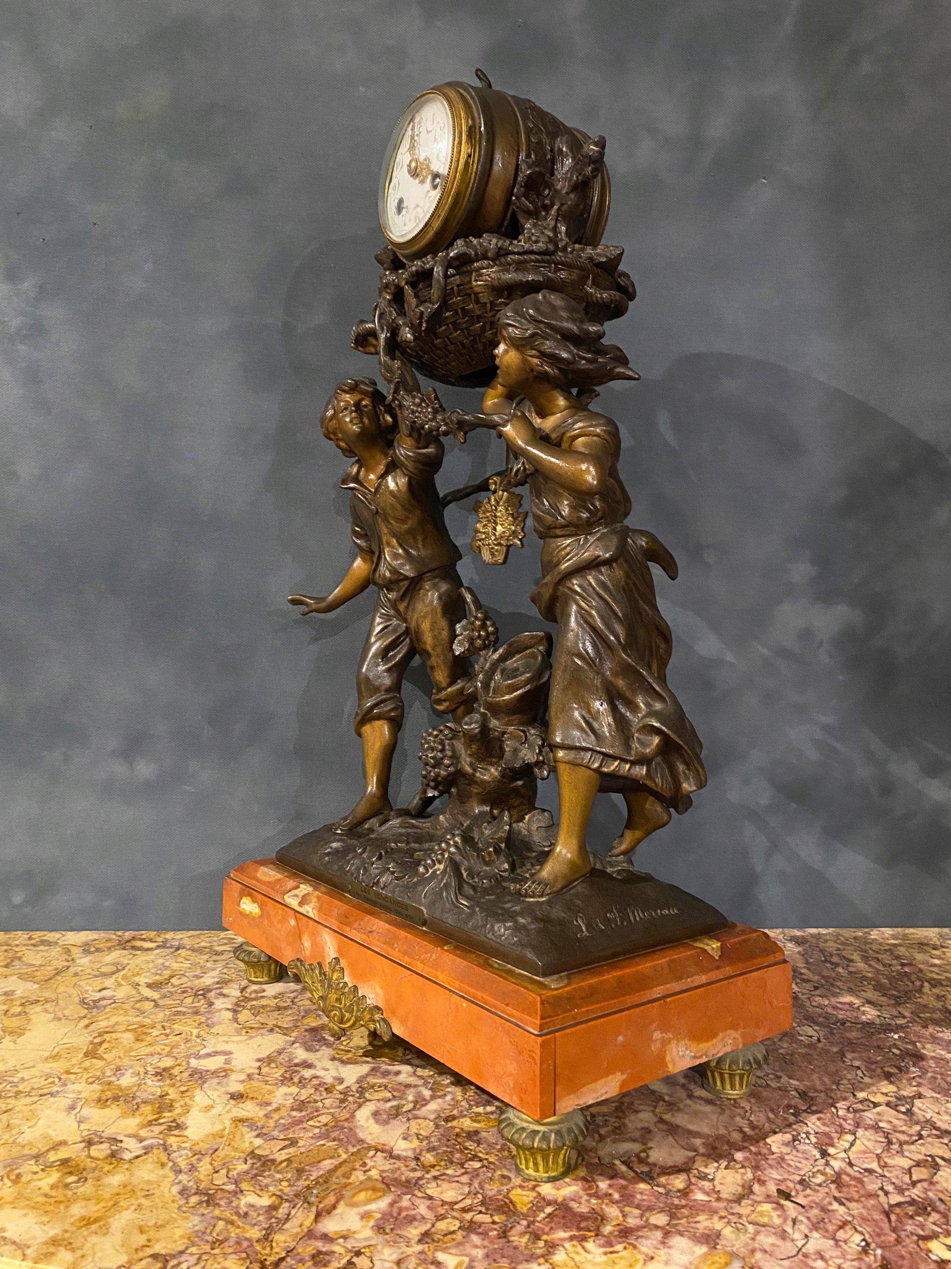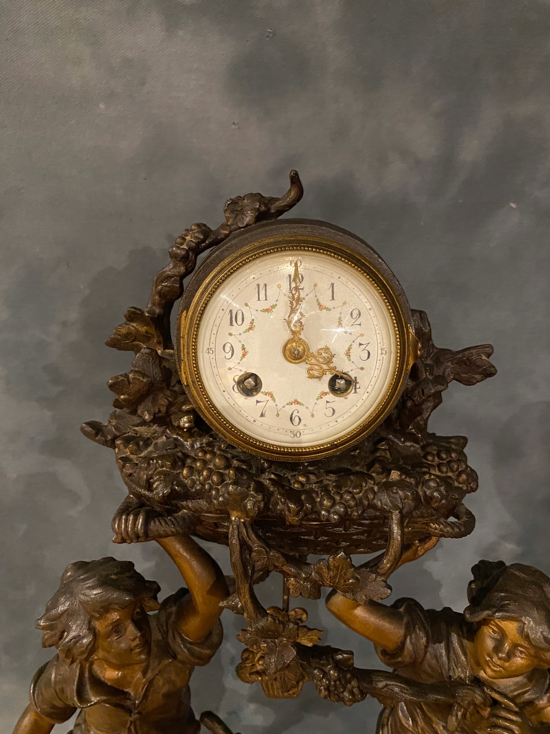 У мене є дуже приємний камінний годинник із зображенням дівчинки та хлопчика, що носить повний кошик винограду та механізм над нею- дуже приємний мотив годинника. 19 століття ця установа стягує 12 відсотків продажів. що означає, що врожай, зроблений Ф. Моро, і виграв золоту медаль. Механізм, виготовлений з порцелянин, прикрашений руками, у дуже хорошому стані. Сучасний ключ. > Ширина годинника: 32, 5 см. Оголошення