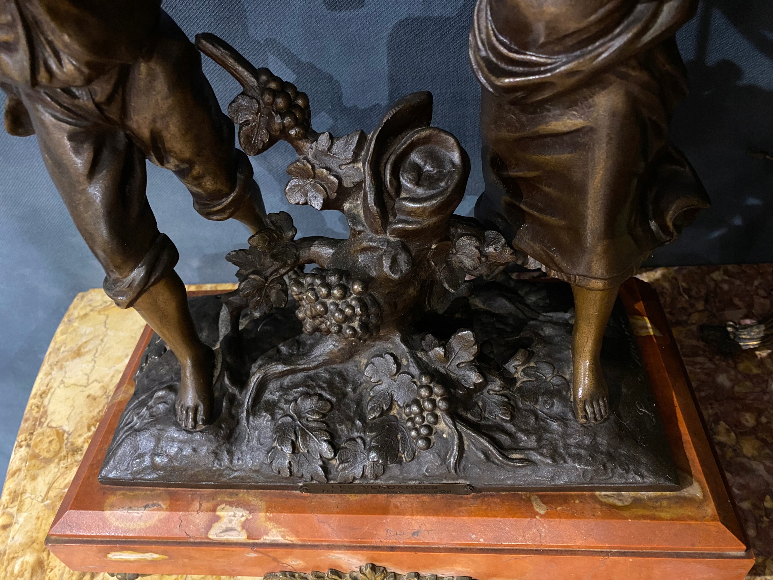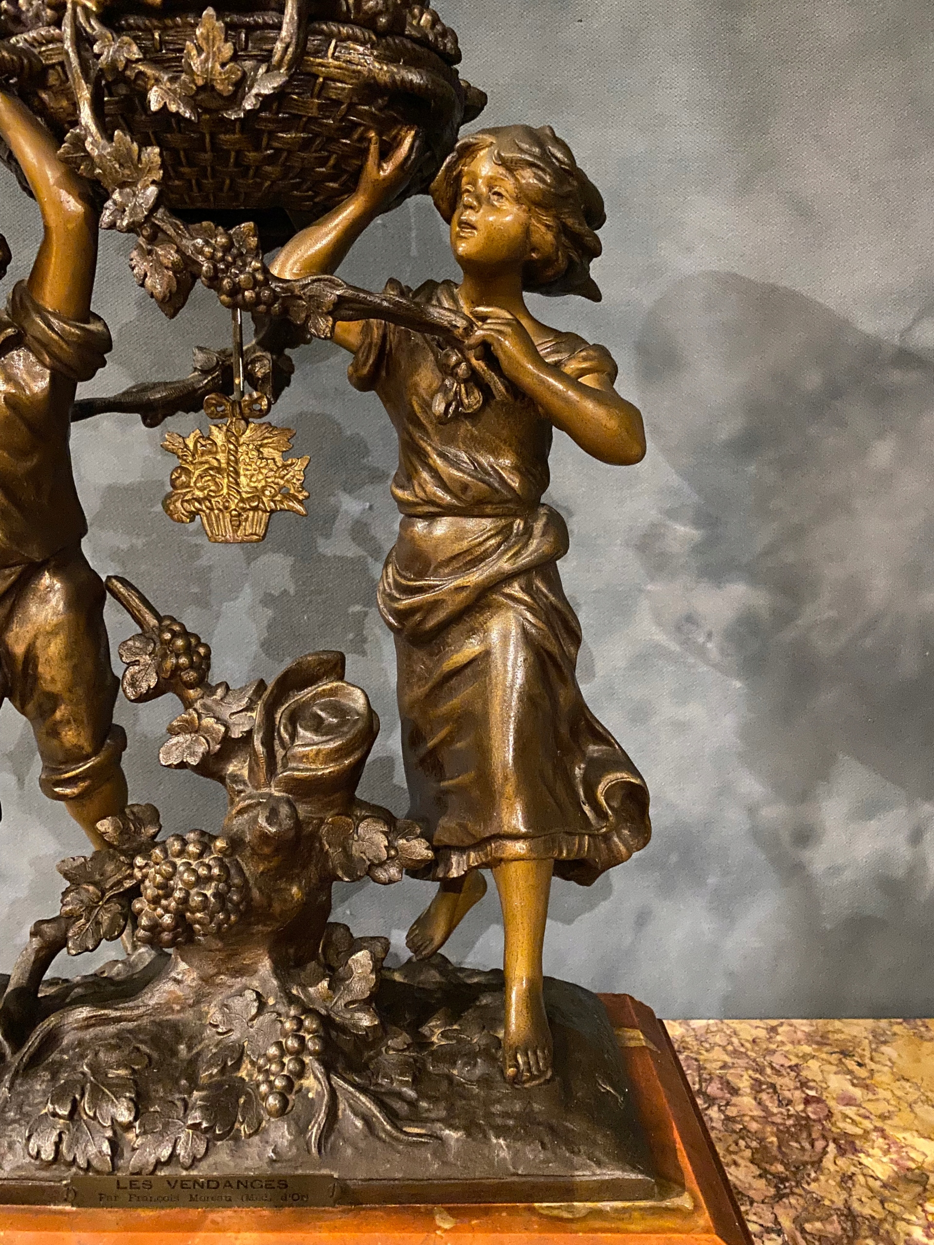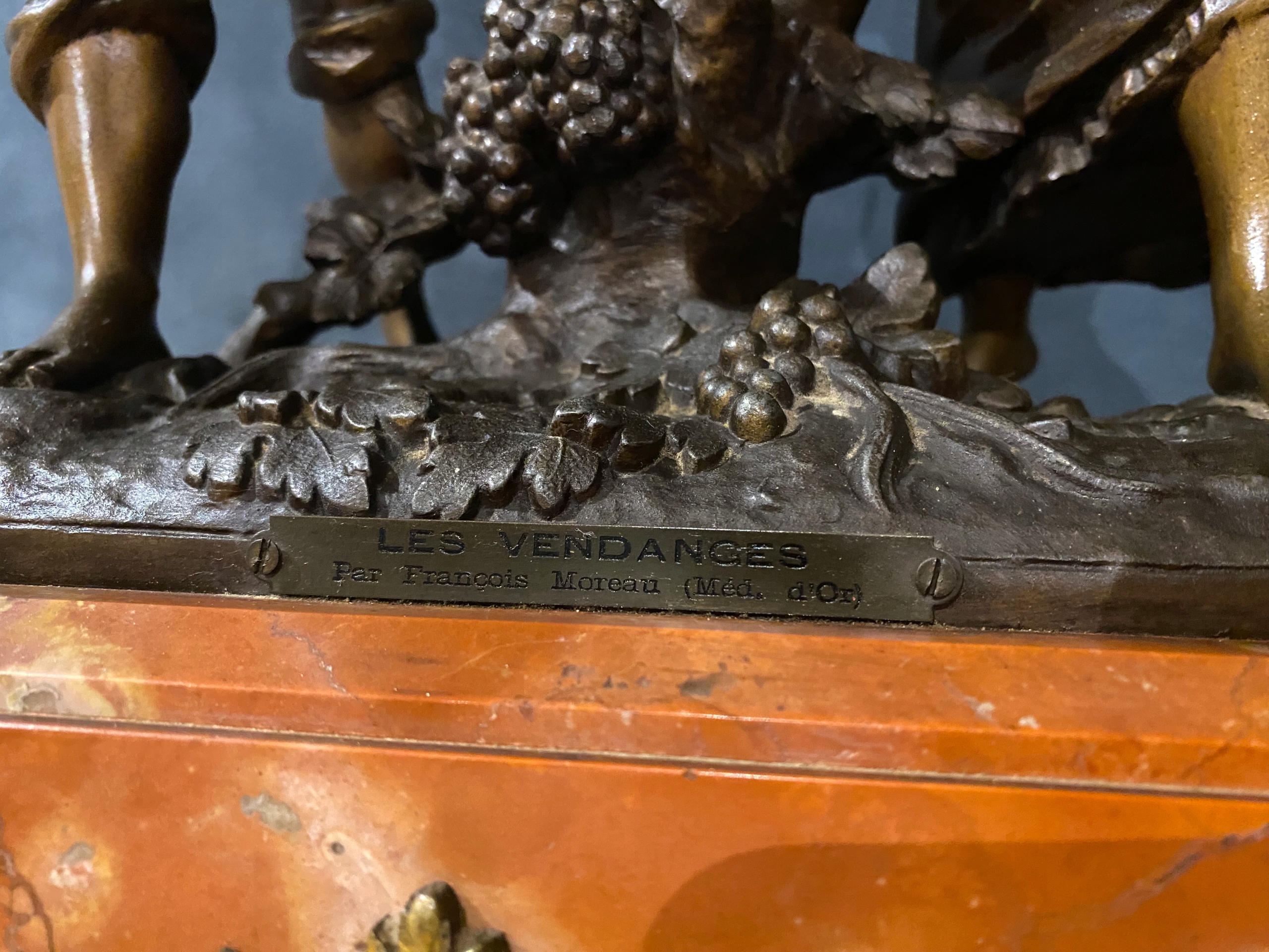 У мене є дуже приємний камінний годинник із зображенням дівчинки та хлопчика, що носить повний кошик винограду та механізм над нею- дуже приємний мотив годинника. 19 століття ця установа стягує 12 відсотків продажів. що означає, що врожай, зроблений Ф. Моро, і виграв золоту медаль. Механізм, виготовлений з порцелянин, прикрашений руками, у дуже хорошому стані. Сучасний ключ. > Ширина годинника: 32, 5 см. Оголошення
