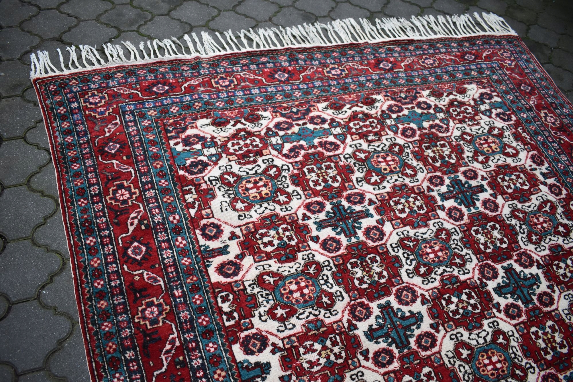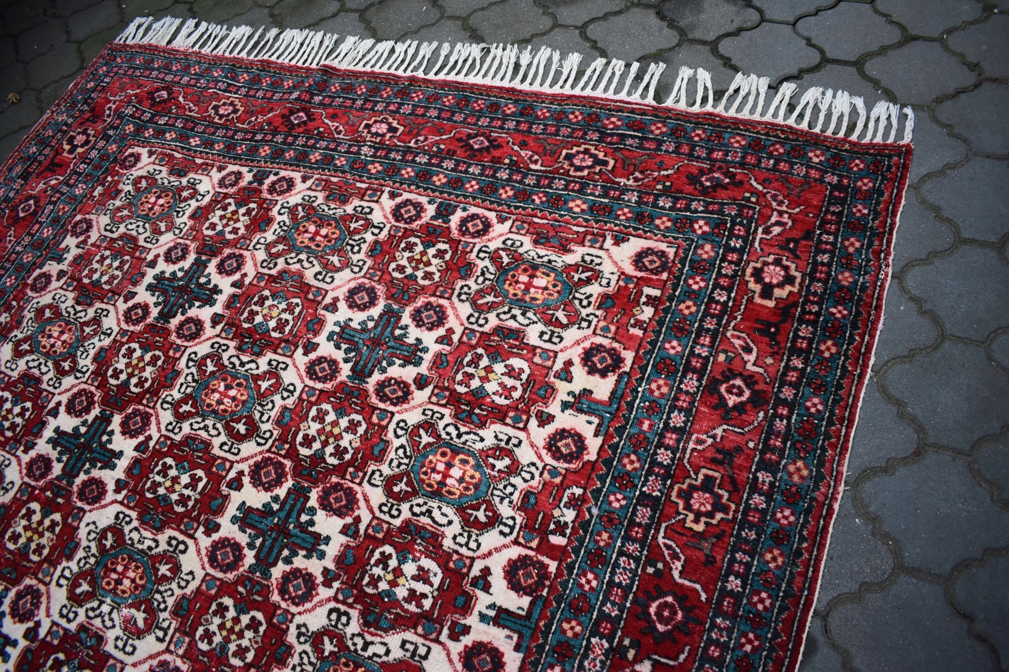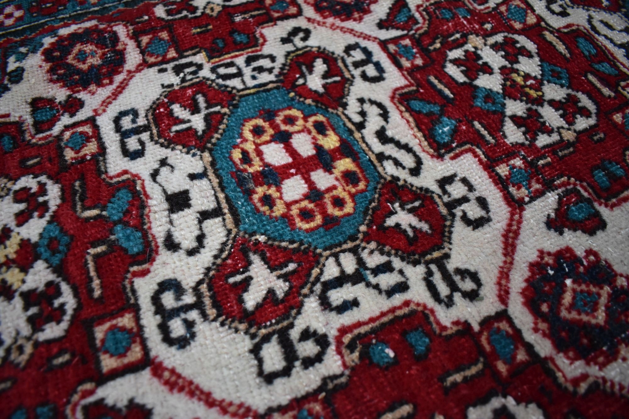 Стан: Килим б/в і в хорошому стані з огляду на вік - без плям і дефектів. У деяких місцях фліс має незначні потертості, які губляться в малюнку. Для вашого комфорту рекомендую освіжити.