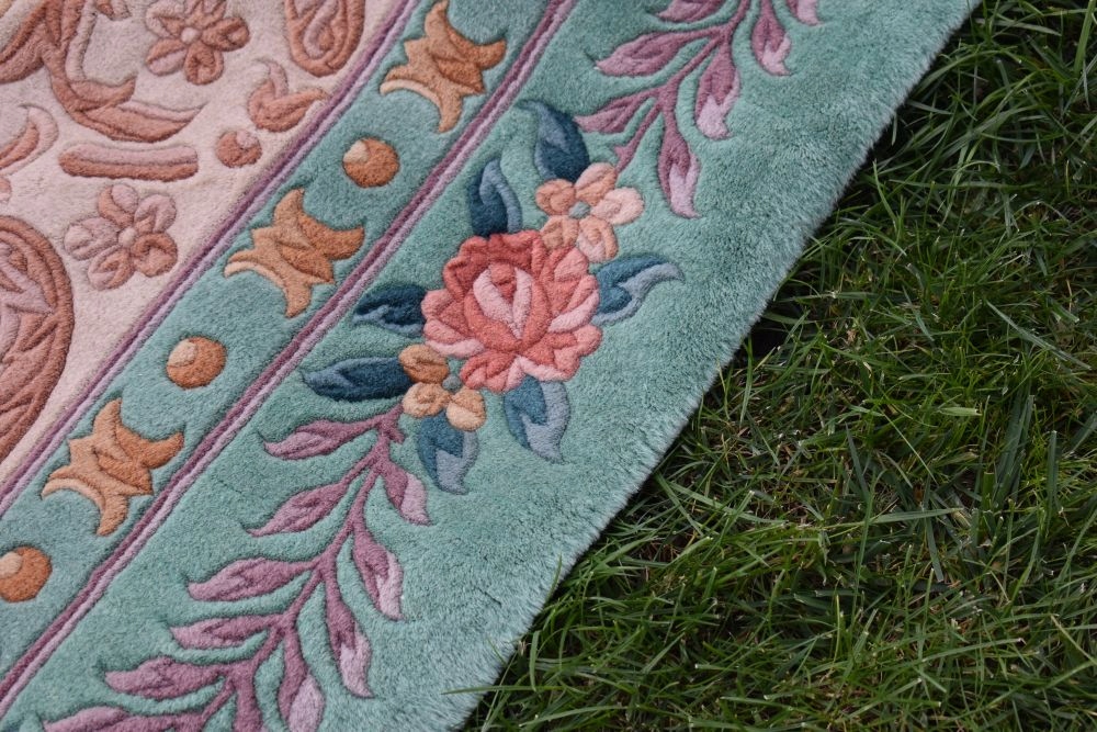 На наступному аукціоні я пропоную вам справжній килим для вітальні Aubusson, виготовлений з високоякісної кашемірової вовни, складного ручного плетення. Килимок з пухнастим м'яким ворсом - опуклі візерунки.