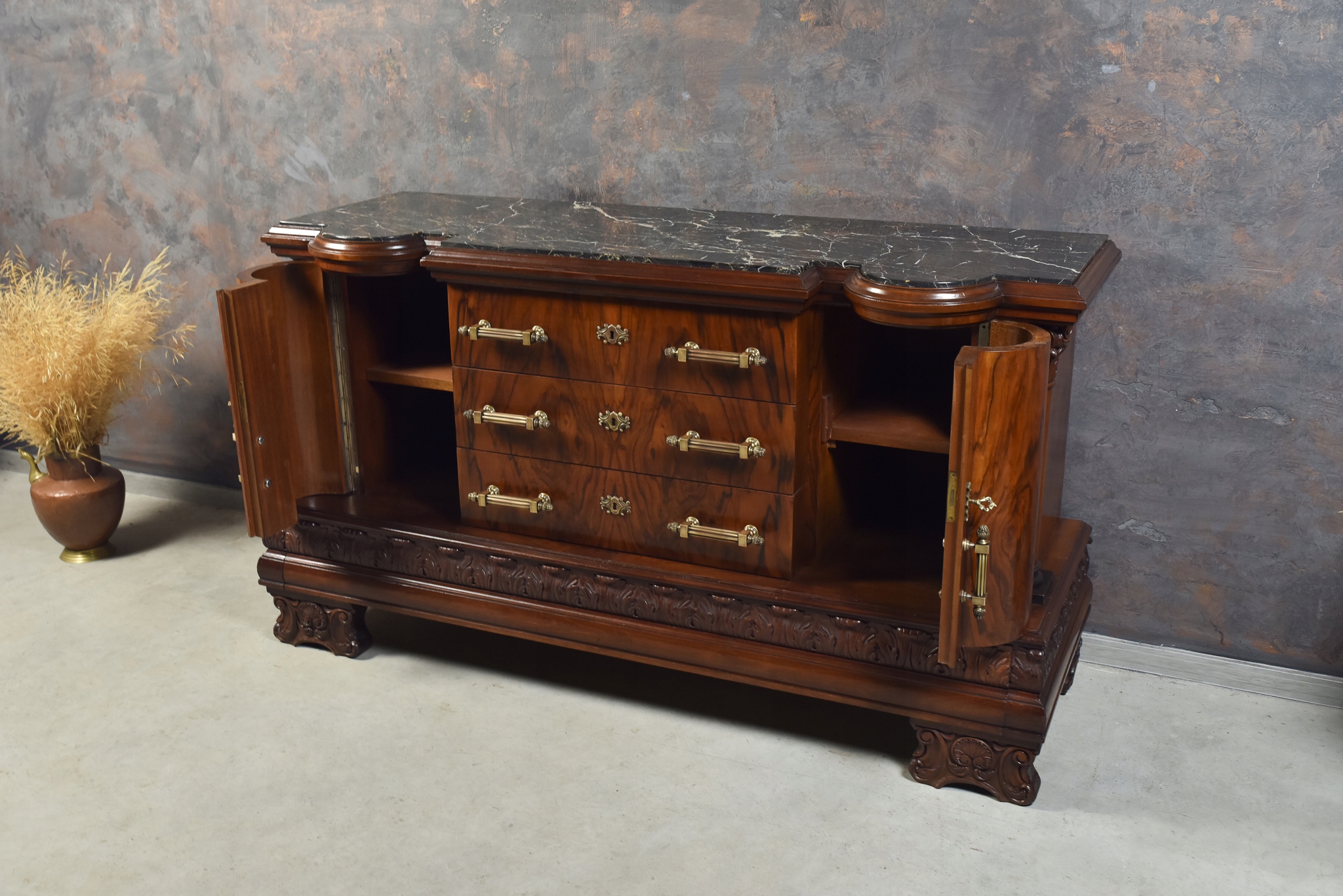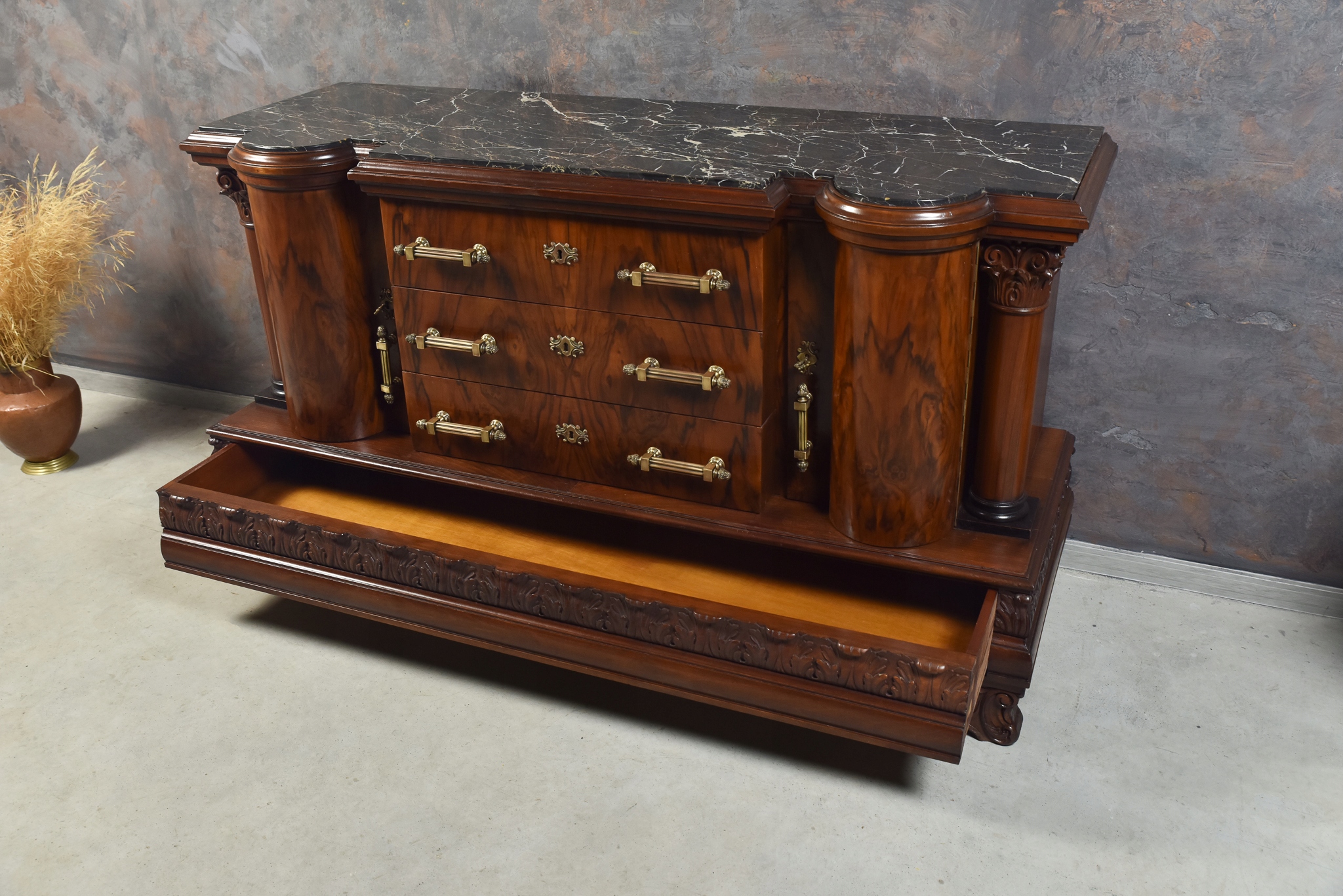 УНІКАЛЬНИЙ КОМОД КОМОДІВ З КОЛОНАМИ, ЯЩИКИ МАСИВНОГО ДЕРЕВА, ГОРІХ ПІСЛЯ РЕМОНТУ