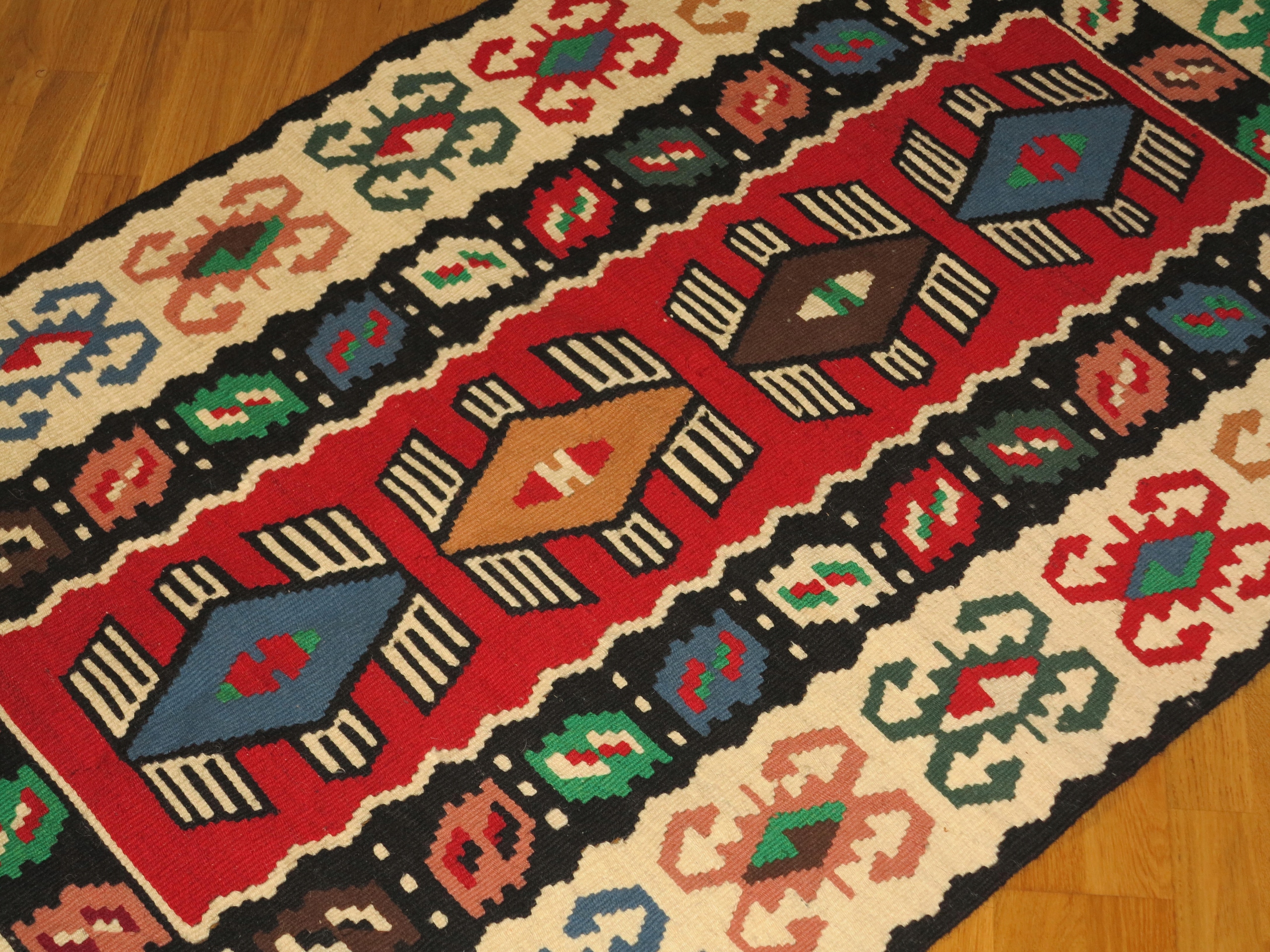 унікальний і дуже декоративний народний килим або стіна на стіні чисто вовняні, з дуже декоративними барвистими шаблонами Aztec