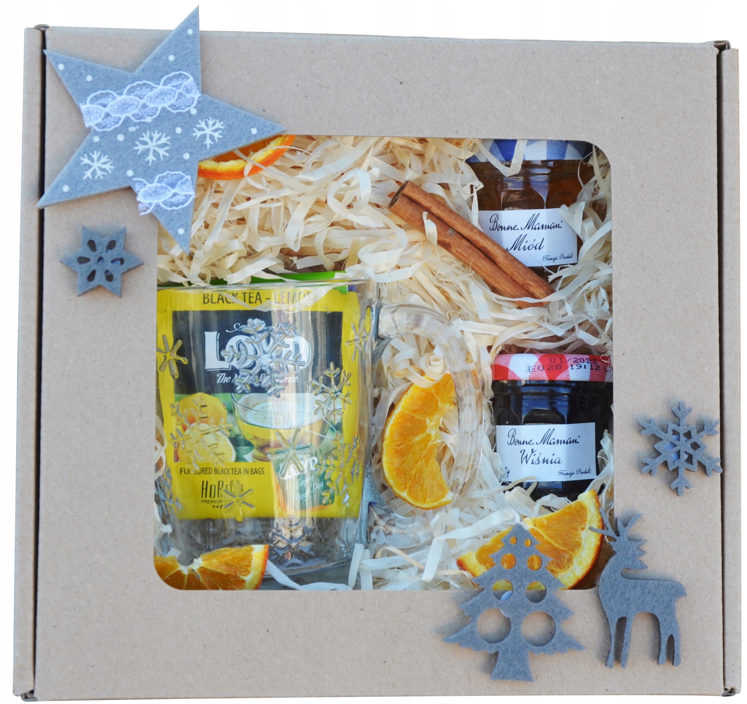 Гарний і практичний подарунок на Різдво - набір для зимових вечорів - чарівний стакан, смачний чай, мед, варення, ложка меду. Все гарно оформлено та запаковано. Ідеальний різдвяний подарунок для ваших близьких, друзів, боса, вчителя.