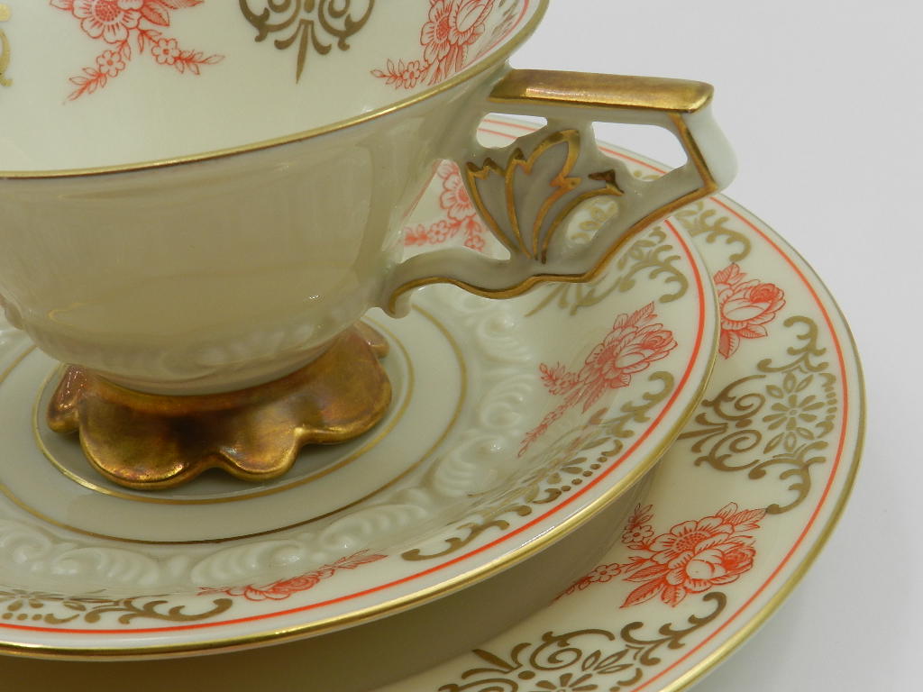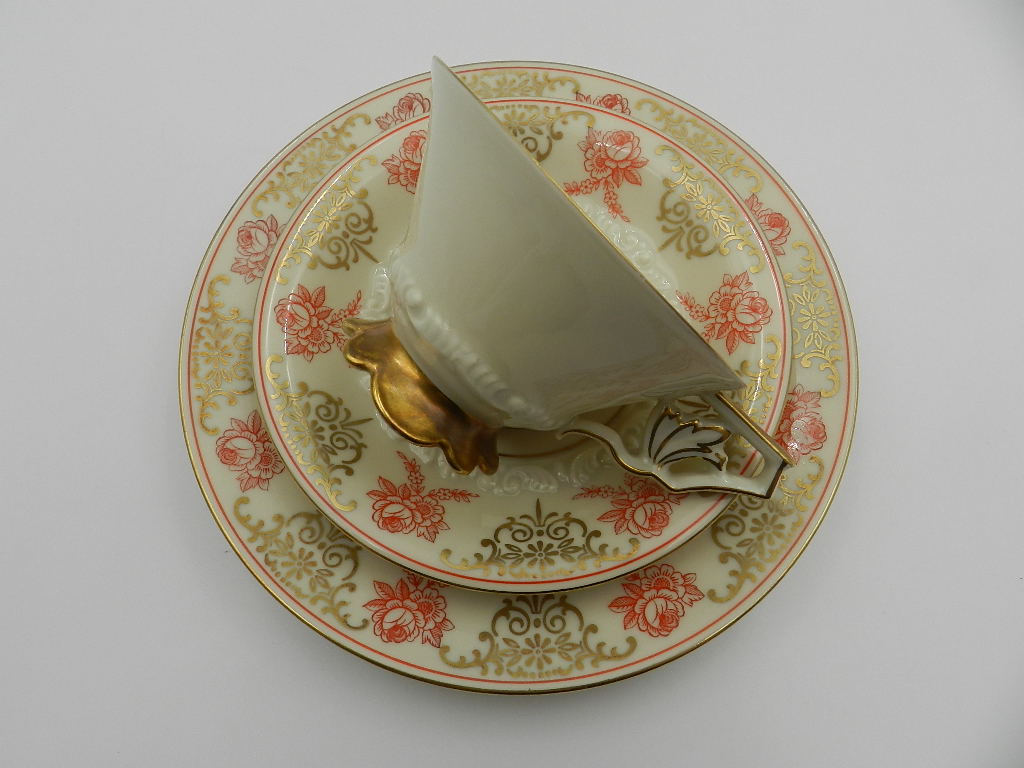 Надзвичайно елегантна ручка чашки і товсті рельєфи на чашці. і блюдце, повністю позолочене, нерегулярна основа робить експонат унікальним і винятковим.