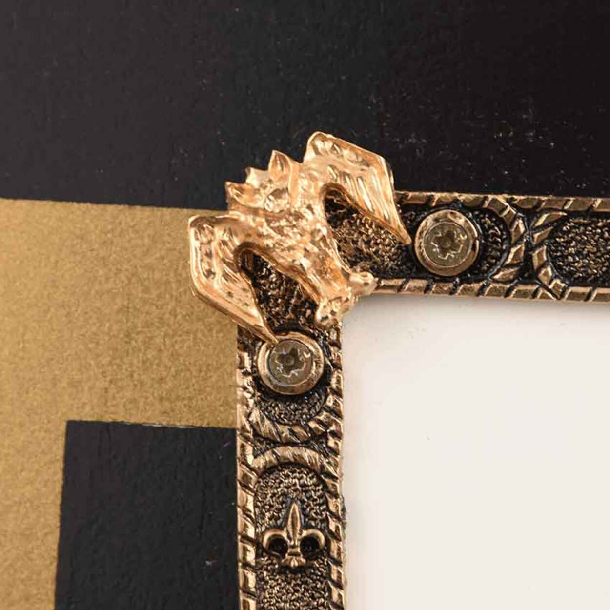 Крім того, щит прикрашений позолоченим орнаментом у вигляді квітки лілії.
