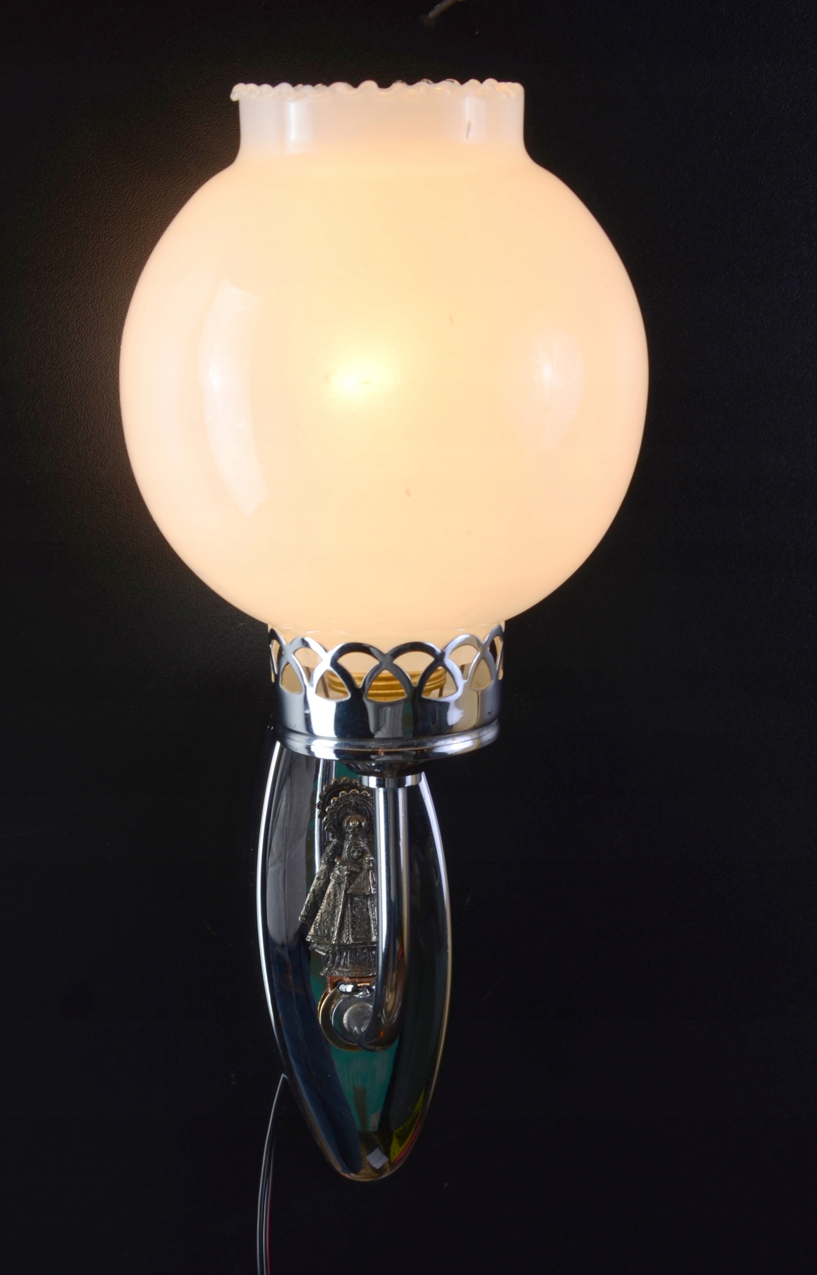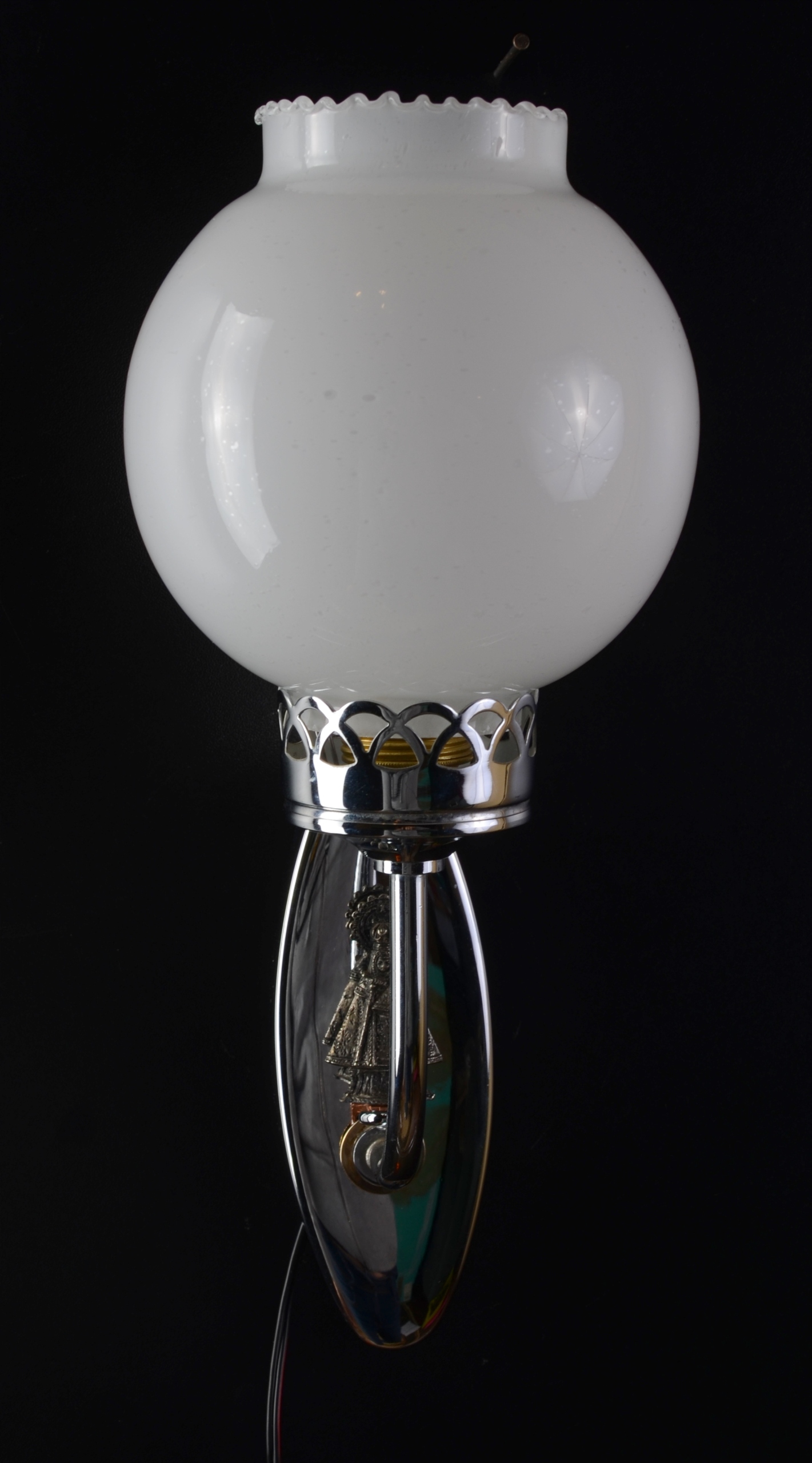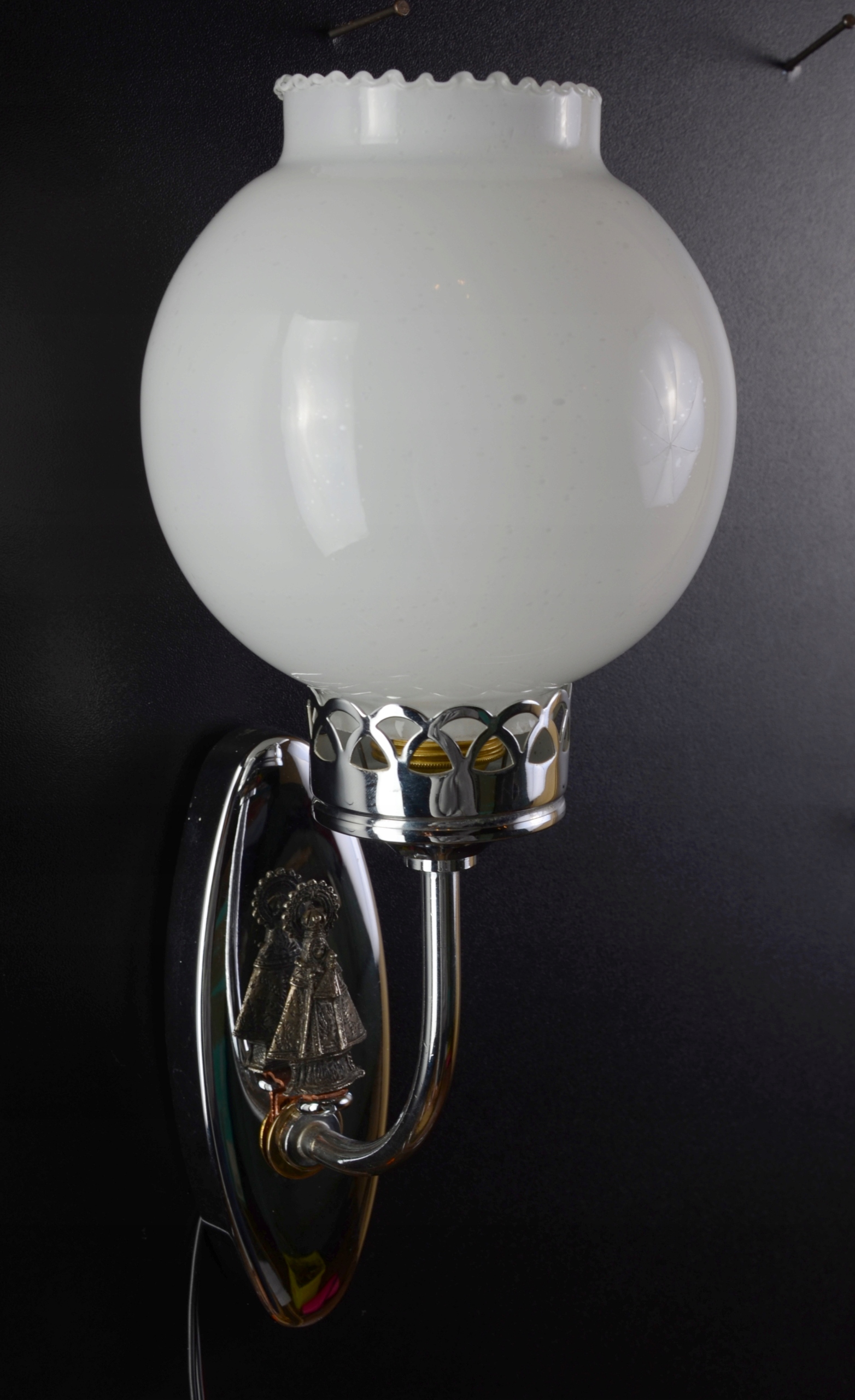 Стильний срібний настінний світильник з білим кульковим абажуром, Іспанія, 1960-ті роки!!!