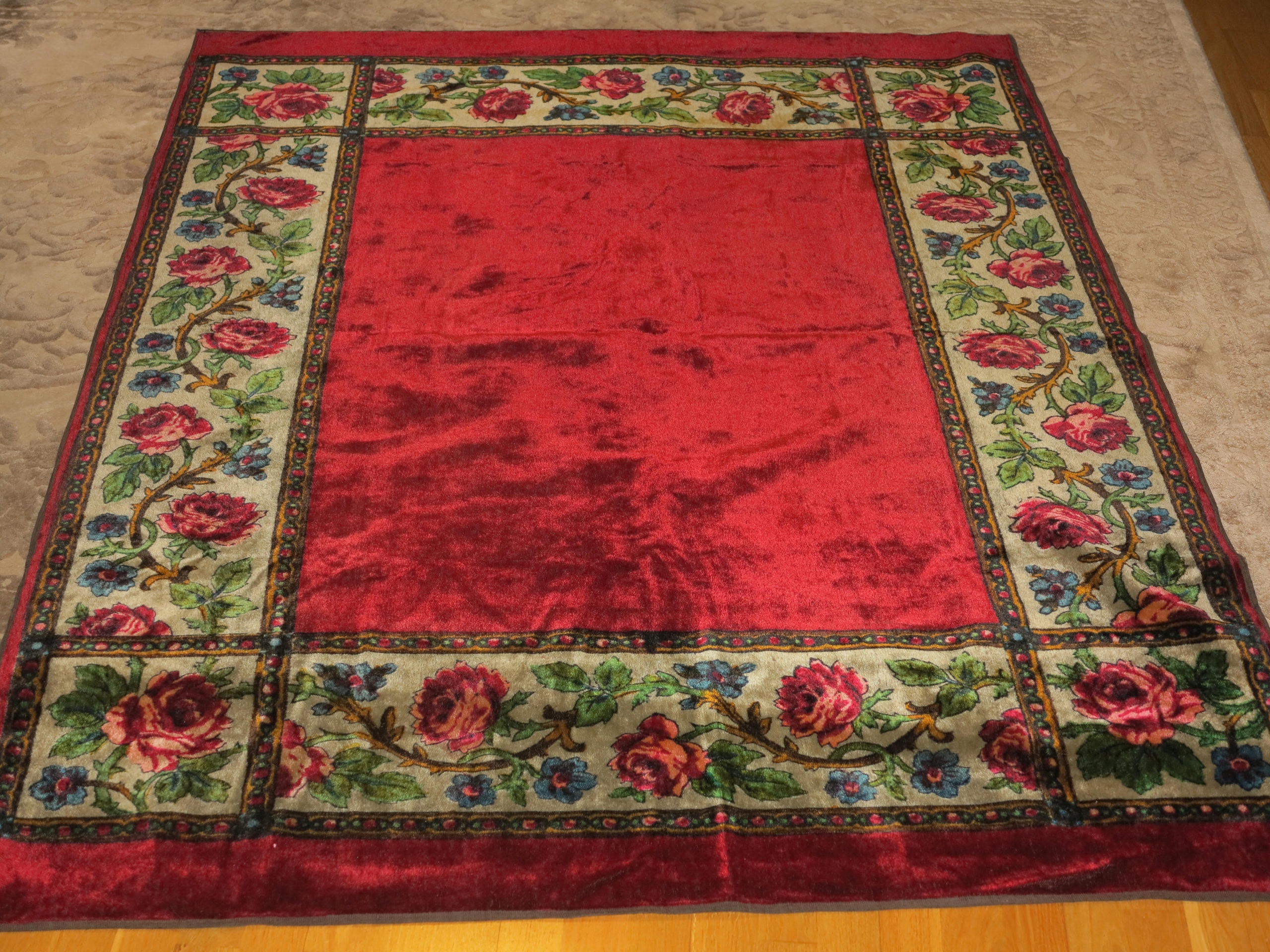 АБСОЛЮТНО УНІКАЛЬНИЙ - АНТИЧНИЙ, ОК. 100-РІЧНА ВЕЛИКА СКАТЕРТИНА KILIM KAPA ВІД ФАБРИКИ ПЛЮШЕВИХ ВИРОБІВ HERMAN SACHS З ЛОДУ. ФАБРИКА ДІЯЛА ДО ПЕРШИХ 30-Х РОКІВ МИНУЛОГО СТОЛІТТЯ. (останні рекламні згадки в газетах датуються 1936 роком) - на звороті скатертини збереглися залишки підпису