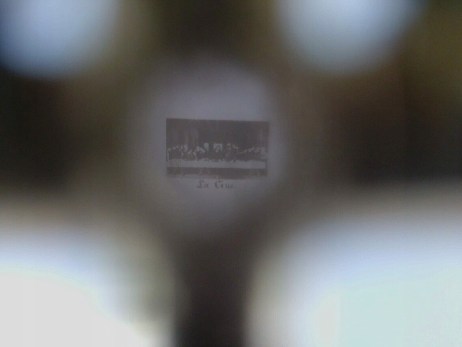 Унікальний високоякісний старовинний кулон у вигляді хреста із золота, приблизно 560 проби. На лицьовій стороні кулона вбудовано дуже маленьке збільшувальне скло, з іншого боку - мікроскопічна мініатюра. Дивлячись через лупу, можна побачити, що мініатюра дуже чітка, внизу є напис французькою мовою «La Cène», що перекладається як «Таємна вечеря». Ймовірно, це ієрейський хрест, хрест досить великий, розміром приблизно 6,2 х 3,3 см, міряючи на вушко. Вага 5500 грам. Незначний слід використання на одній стулці. Аукціон тільки для кулона.