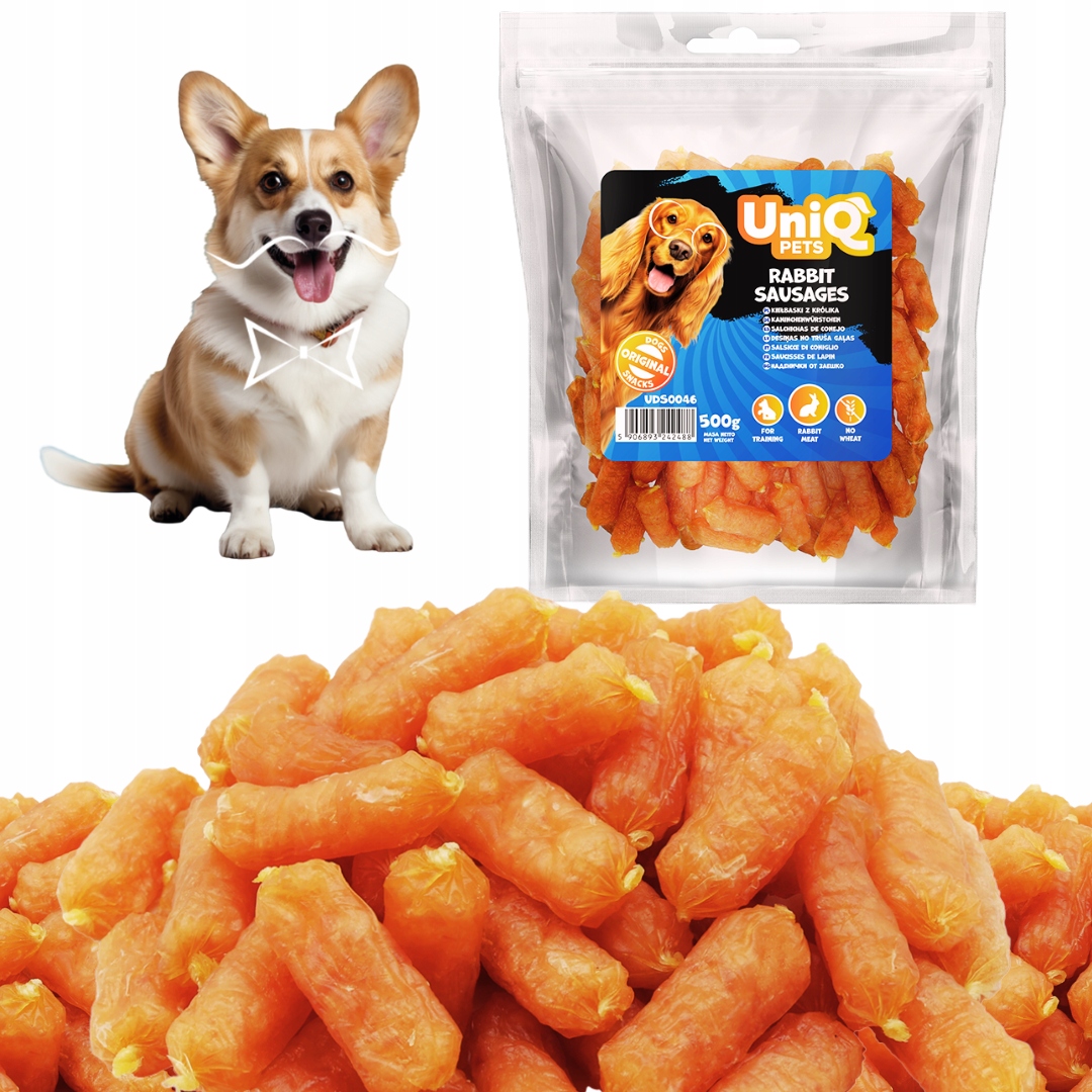 4Кроликові ковбаси Uniq - це ароматичне та делікатне делікатність, яке, безумовно, сподобається вашій собаці. Ідеально як нагорода або щоденна закуска, вони забезпечують не лише унікальний смак, але й хвилину радості для вашого вихованця.