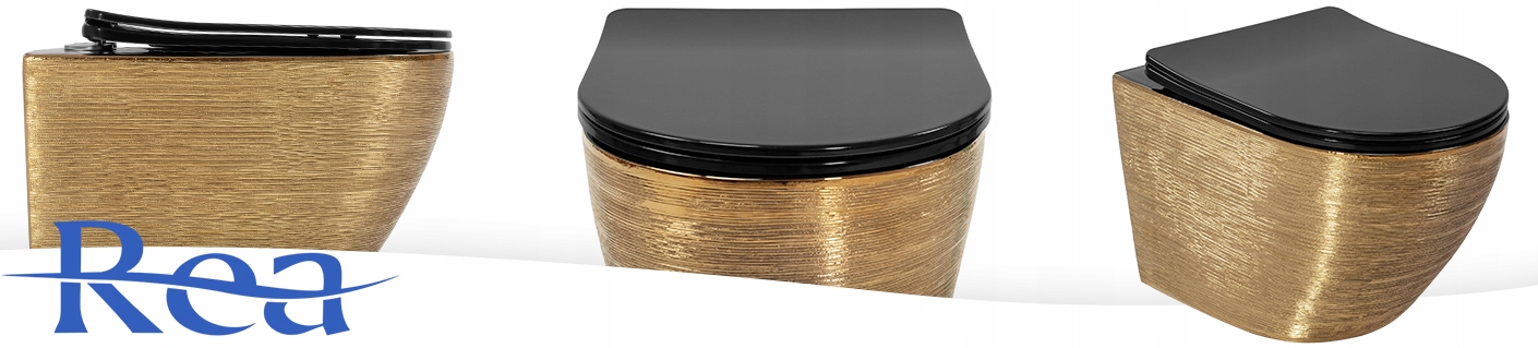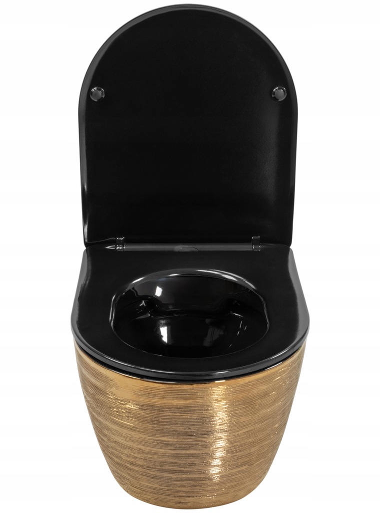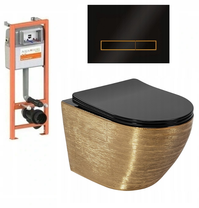 КОМПЛЕКТ УНІТАЗІВ З ЧОРНОГО ЗОЛОТА З ЧОРНОЮ ГЛЯНЦЕВОЮ ДОШКОЮ, РАМОЮ УНІТАЗУ ТА КНОПКОЮ