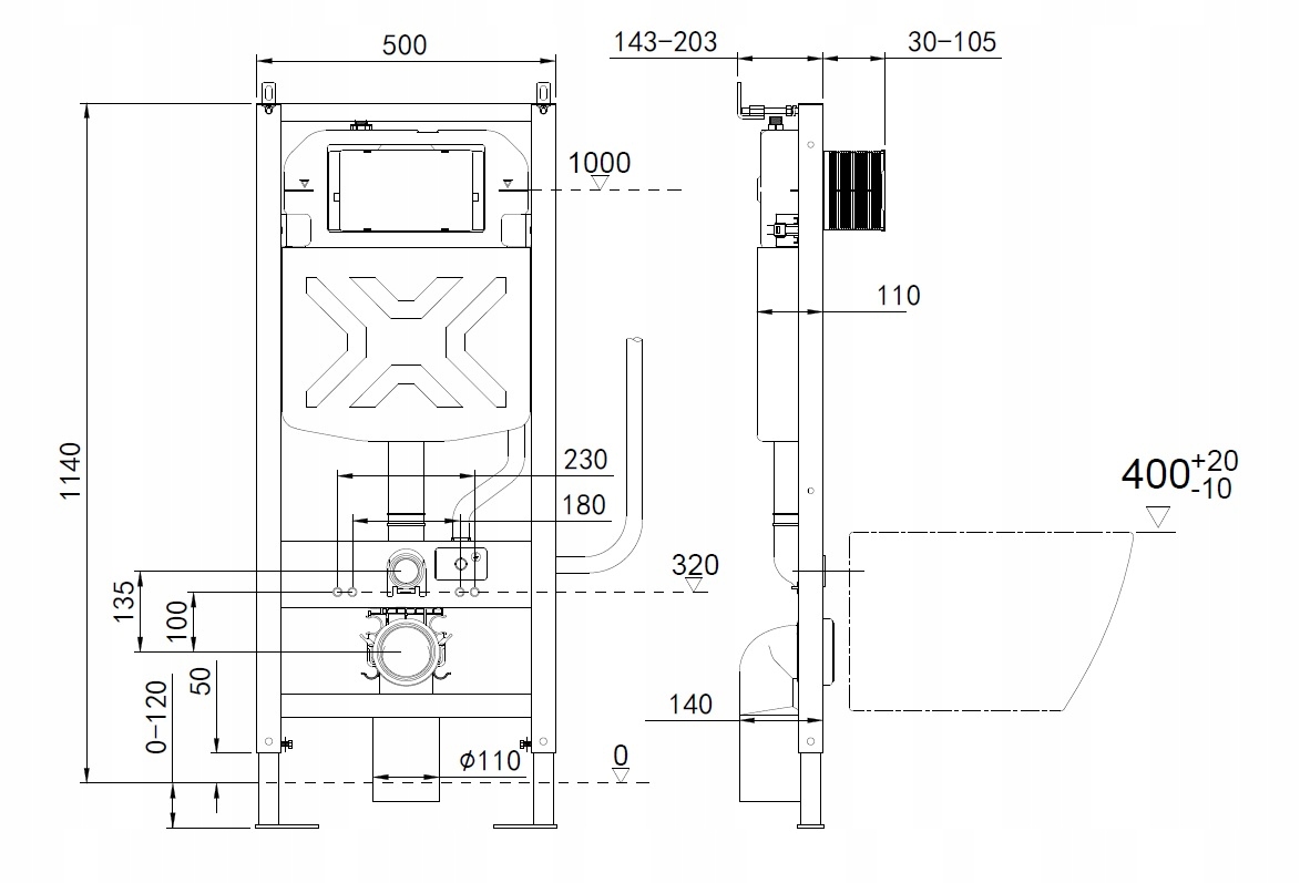 • Спосіб монтажу: підвісний унітаз, кріплення до прихована рама з резервуаром для води та кнопковим змивом.