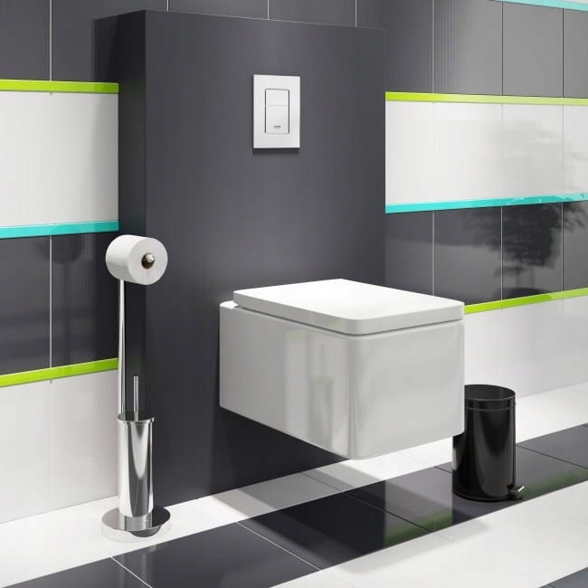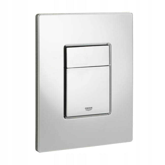 Кнопка Grohe Even Chrome – це поєднання пневматичної технології, яка допомагає економити воду та стильного зовнішнього вигляду. Він використовується для активації змивного клапана в усіх прихованих рамах Grohe. Завдяки тому, що він виготовлений з ABS-пластику, він надзвичайно міцний і стійкий до подряпин. Красиво блищить хромоване покриття. Кнопка може кріпитися як вертикально, так і горизонтально, надаючи практично необмежені можливості для облаштування ванної або туалету. Крім того, двокнопковий елемент дозволяє економно витрачати воду.