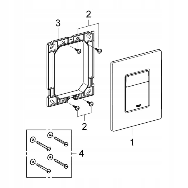 - Вміст набору: кнопка, рамка для кріплення кнопок, кріплення для кнопок, монтажний набір