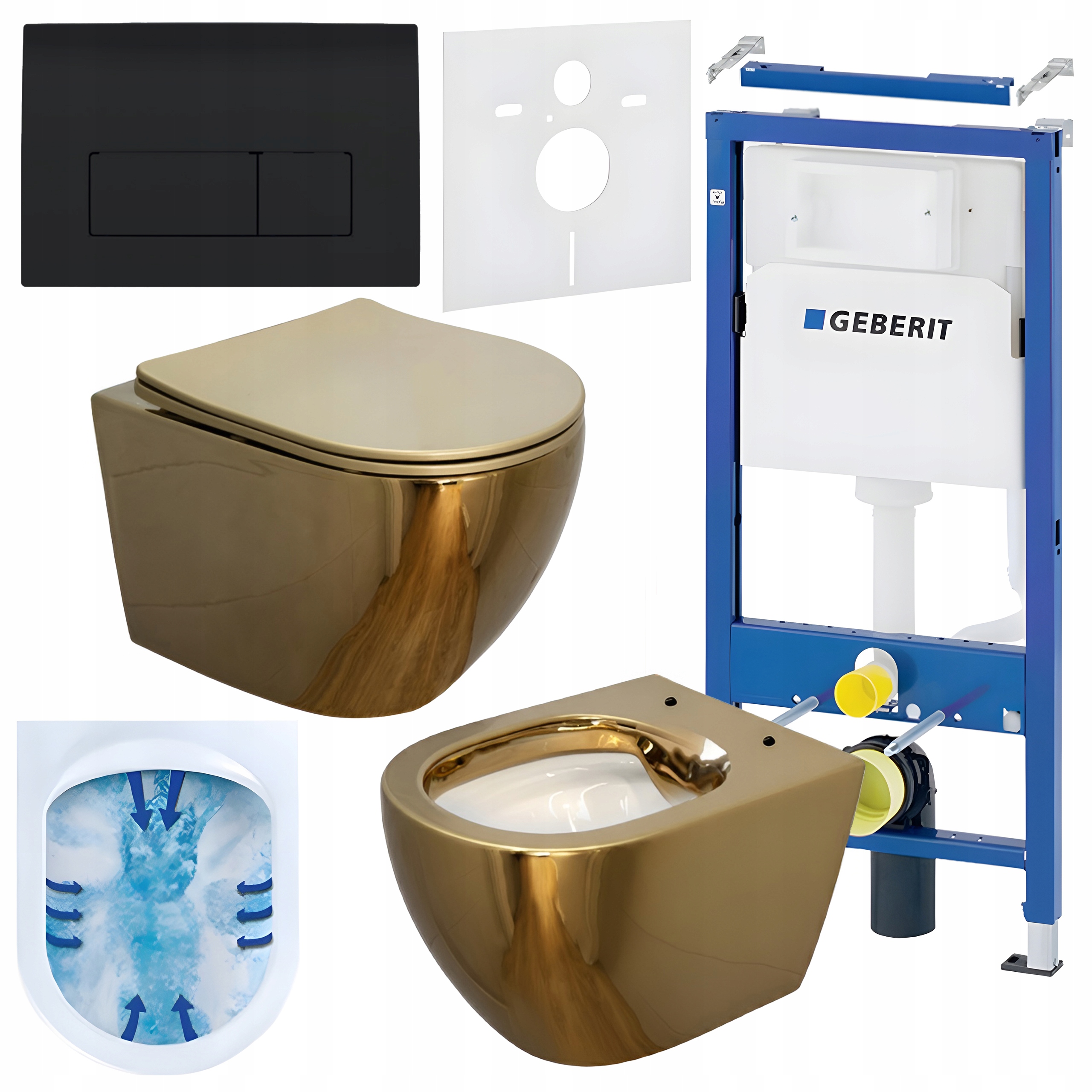 УНІТАЗ КОМПЛЕКТ GEBERIT КАРКАСНА ЧАША MIZU-GL-WH-RIM-03 BLACK BUTTON