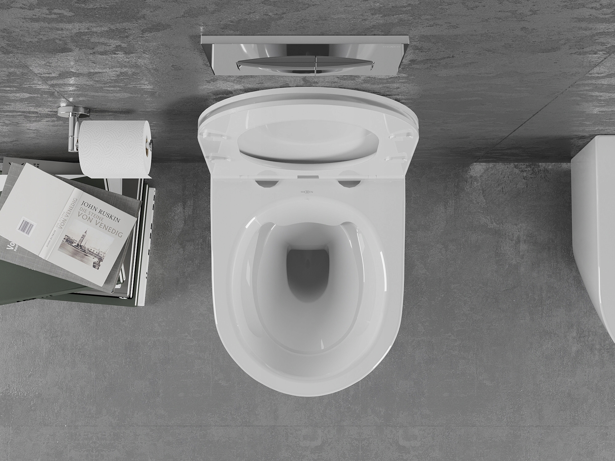 - Технологія без оправ забезпечує вільний потік води по всій камері, що полегшує утримання унітазу в чистоті. < /ul>