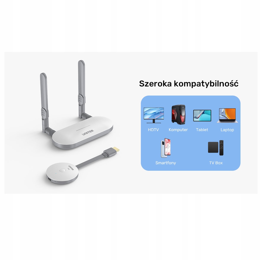 unitek v1183b01 бездротовий передавач HDMI є сучасним рішенням. Завдяки стабільній передачі без затримок та широкої сумісності вона буде працювати в домашніх, офісних та навчальних програмах. Пристрій не є всебічним рішенням, але є розширенням можливостей V1183A01. <Лі Ultra HD: чітке, детальне зображення з високою роздільною здатністю. Консолі, телевізори та проектори. Ідеальне рішення для потокової, презентації та ігор. Затримки