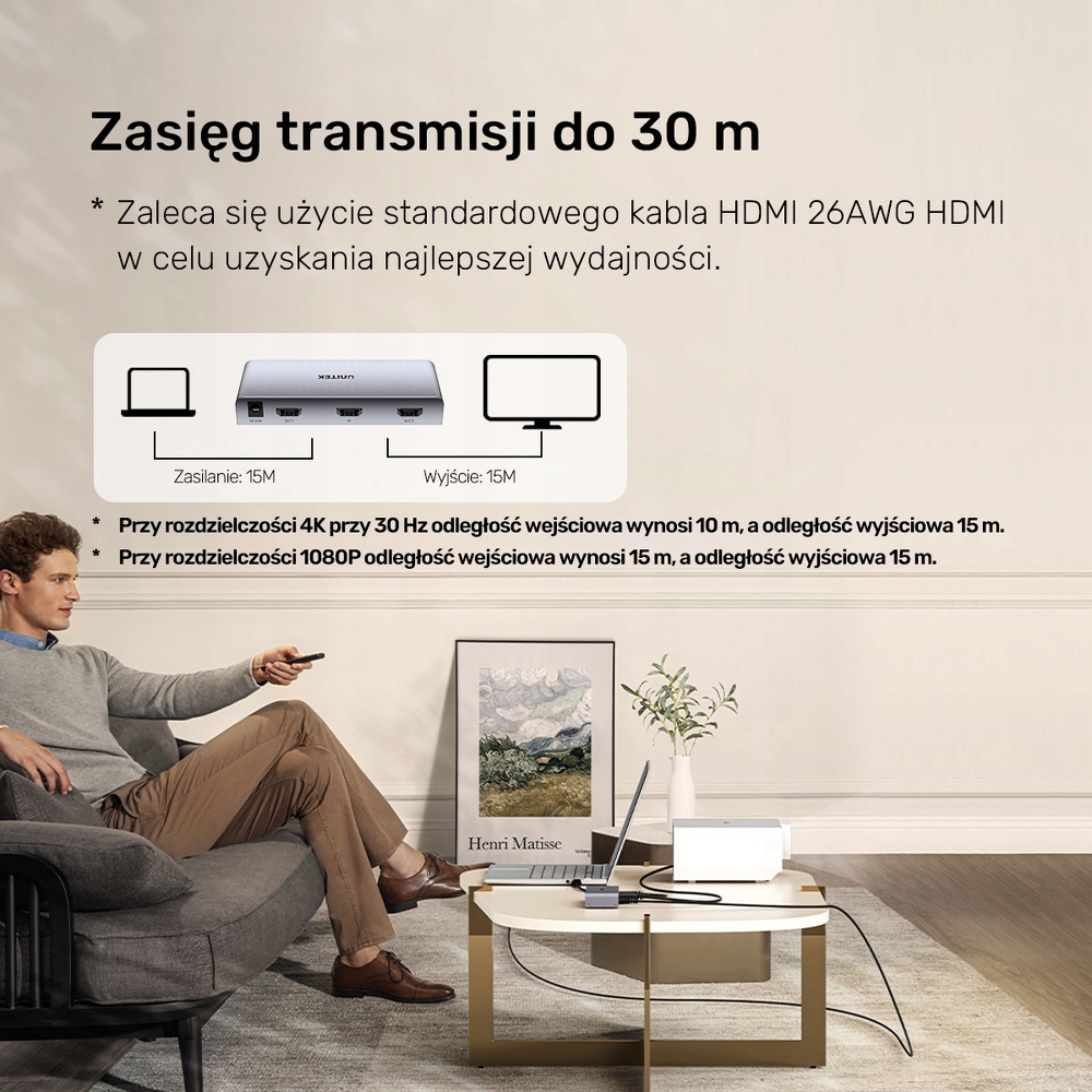 - Відстань передачі: Вхід: 10м/вихід: 15м (стандартний кабель HDMI 26AWG)