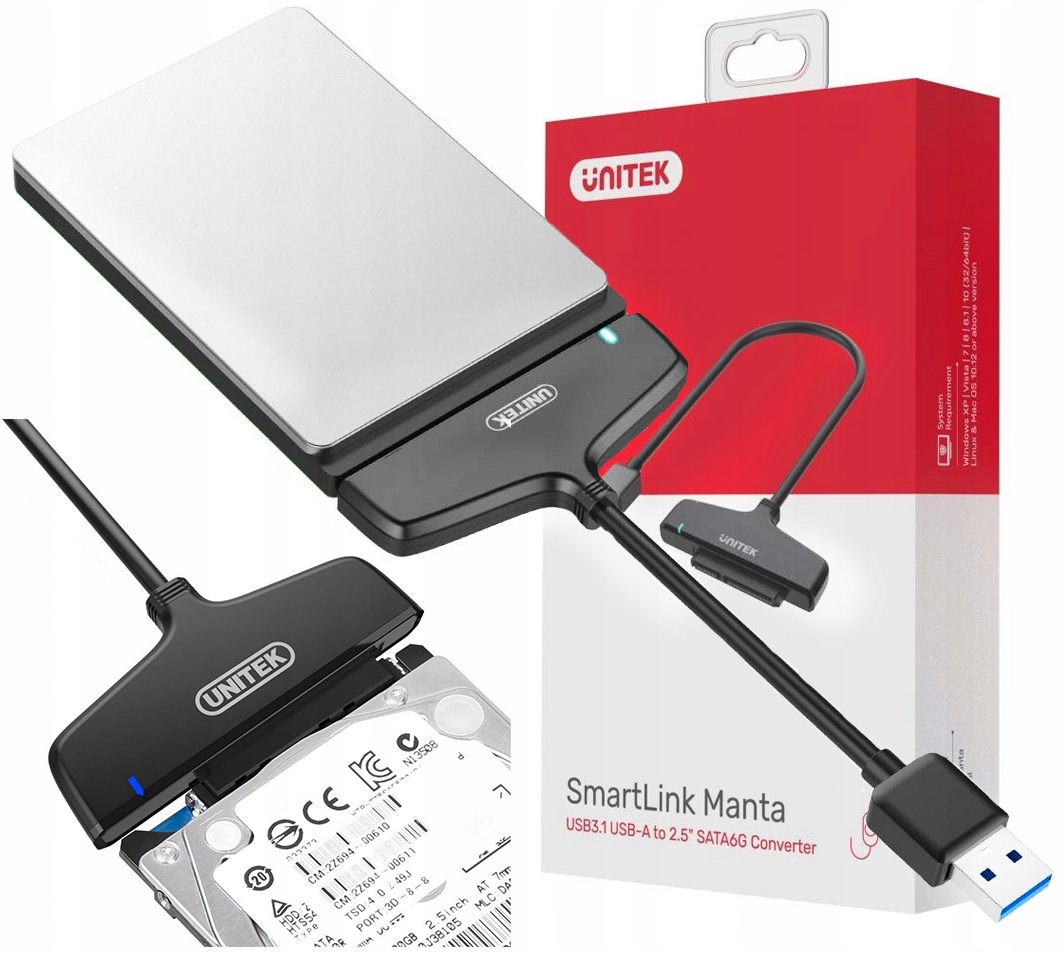 unitek y-1096 USB 3.0 міст до SATA III 6G; Швидке підключення 2,5 \ "до комп'ютера; Unitek Y-1096-адаптер USB 3.0 для 2,5 \" sata. Це дає можливість підключати жорсткі диски 2,5 \ "HDD та SSD з будь -якою ємністю та будь -якою компанією. Це найшвидший спосіб підключити диску 2,5 \" до комп'ютера - незалежно від того, вам потрібна додаткова пам'ять, задній або більший маятник. Найшвидші перекази; Адаптер оснащений інтерфейсом SATA III, що дозволяє максимально переказувати 6 Гбіт / с. Використання останнього преміум -чіпсета з функцією UASP (USB SCSI протоколу) дозволяє досягти найвищих реальних переказів: у 2 рази швидше, ніж ті, що пропонуються автобусом USB 3.0; Плаглей - зручність використання; Unitek Y-1096 не потребує водіїв. Просто підключіть його і готовий негайно діяти. Він також має функцію сну, яка автоматично спить пристрій через 30 хвилин бездіяльності. Ця функція продовжує термін, пов'язаний з ним жорсткі диски. Адаптер дуже легкий і легко рухається в будь -якій сумці для ноутбуків.