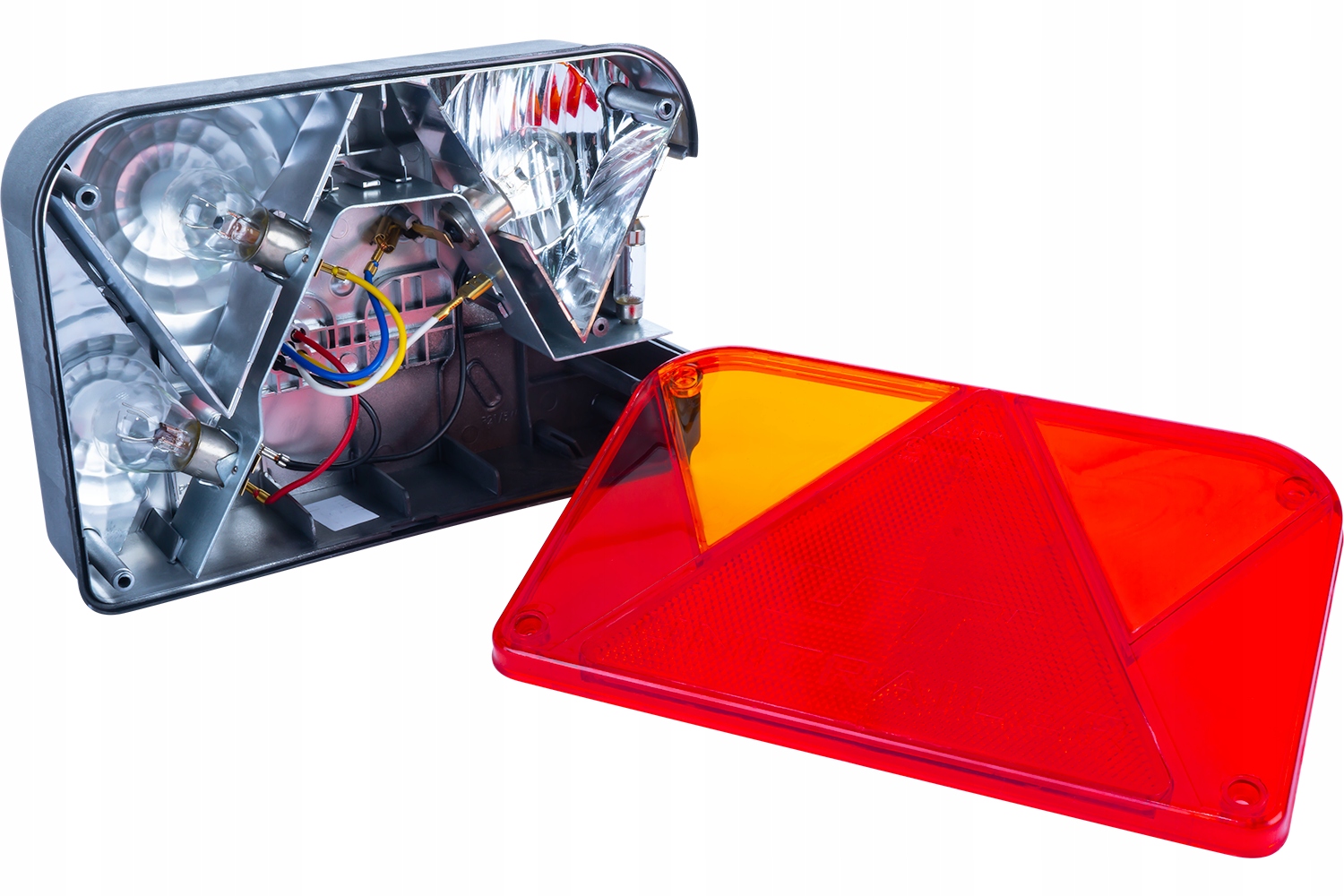 Предметом продажу є оригінальний задній ліхтар "Dobplast", призначений для різних типів причепів. Лампа оснащена габаритним світлом, стоп-сигналом, протитуманним світлом, підсвічуванням номерного знака і поворотником. Має світловідбиваючий трикутник. З'єднання байонетного типу (круглий внутрішній отвір) 5 PIN. Розміри лампи: 20 х 13,5 х 5,5. Відстань між гвинтами 4 см.