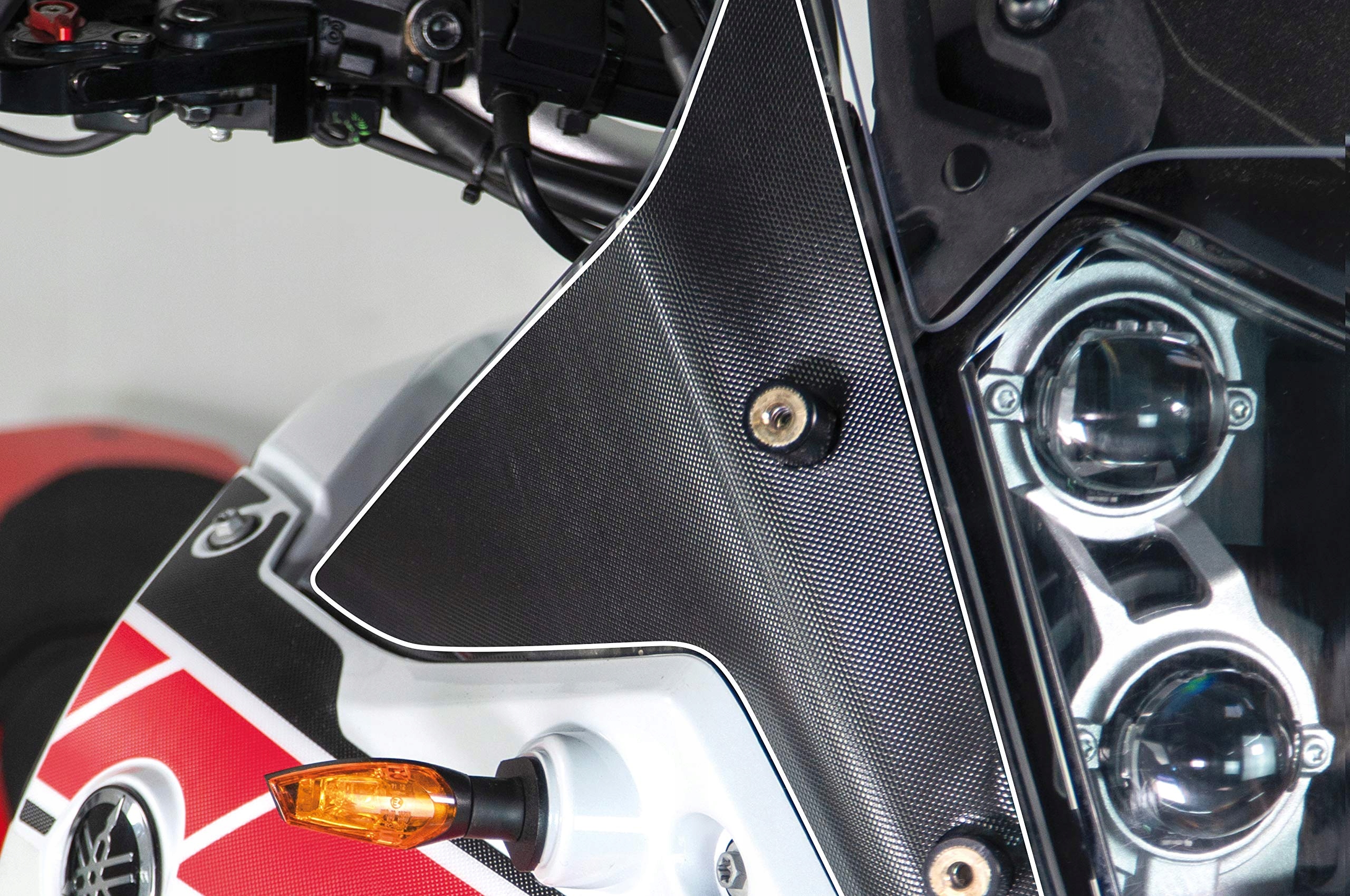Захисна наклейка для Yamaha Tenere 700 - ідеальний спосіб захисту крил, вилки, фари, передніх обкладинок та відображення на подряпини та невеликих ударів. Завдяки легкому застосуванню та високій довговічності, ця наклейка не тільки захищає, але й прикрашає мотоцикл, зберігаючи його в бездоганному стані.