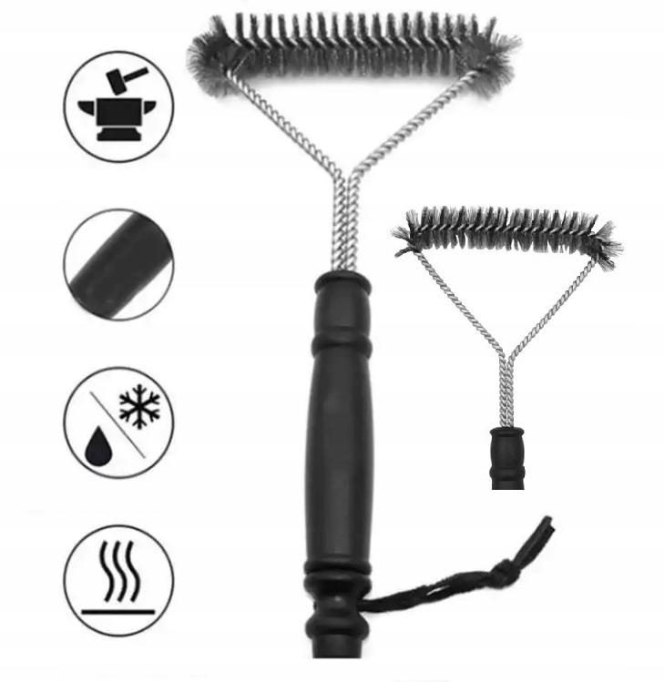 ✅Ефективність у чищенні – Міцна сталева щетина ідеально видаляє з решітки опіки, жир та залишки їжі, не дряпаючи поверхню.