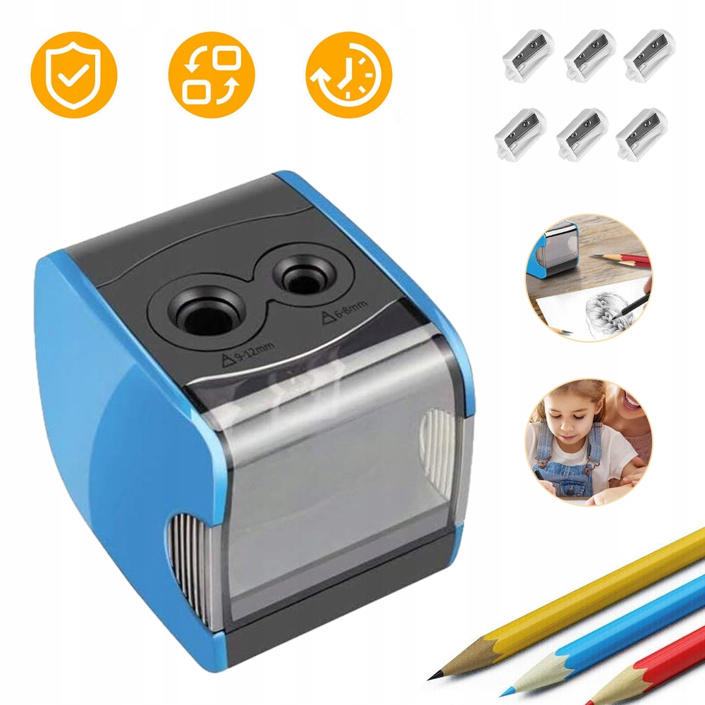✏️✏️ Вміст упаковки: 1 x електрична точилка для олівців, 6 x леза (2 леза на точилку), 1 x USB-кабель для передачі даних, 1 x посібник користувача.