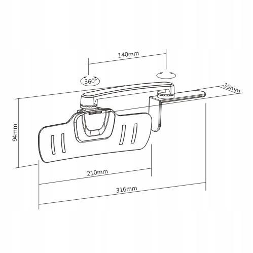 - Розміри: 316x39x94 мм (12,4"x1,5"x3,7")