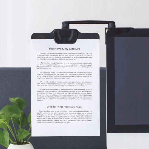 Цей тримач є простим рішенням, яке піднімає документи на рівень очей користувача. Ви читаєте нотатки, копії паперів або дивитеся на візитні картки? Тепер ви можете робити це, не опускаючи голови, що значно підвищує комфорт і зменшує втому очей і хребта.