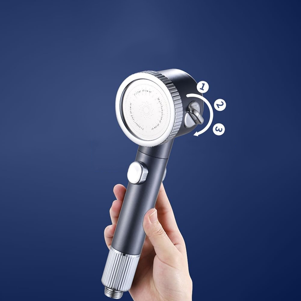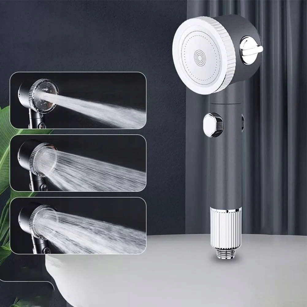 Душ високого тиску - Ручна душова лійка використовує мікронасадку та унікальну внутрішню структуру для ефективного підвищення тиску, економлячи воду. Вихід води потужний і ефективний, ідеально вирішує проблеми, викликані низьким тиском води, і дозволяє вам повністю насолоджуватися комфортом душу. Душова лійка з підвищенням тиску має 3 режими душу, які можна легко перемикати натисканням кнопки.