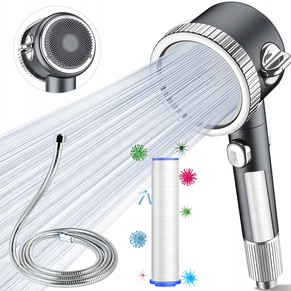 Подвійна фільтрація. Нещодавно вдосконалена душова лійка має двошарову конструкцію фільтра з інтегрованим нанофільтруючим елементом із поліпропіленової бавовни та фільтруючою кулькою з негативними іонами, які можуть ефективно видаляти хлор, іржу, забруднюючі речовини та бактерії з води. Очищує якість води, зменшує забруднення у воді та запобігає пошкодженню шкіри та волосся. Забезпечує вам і вашій родині чистий і здоровий душ!