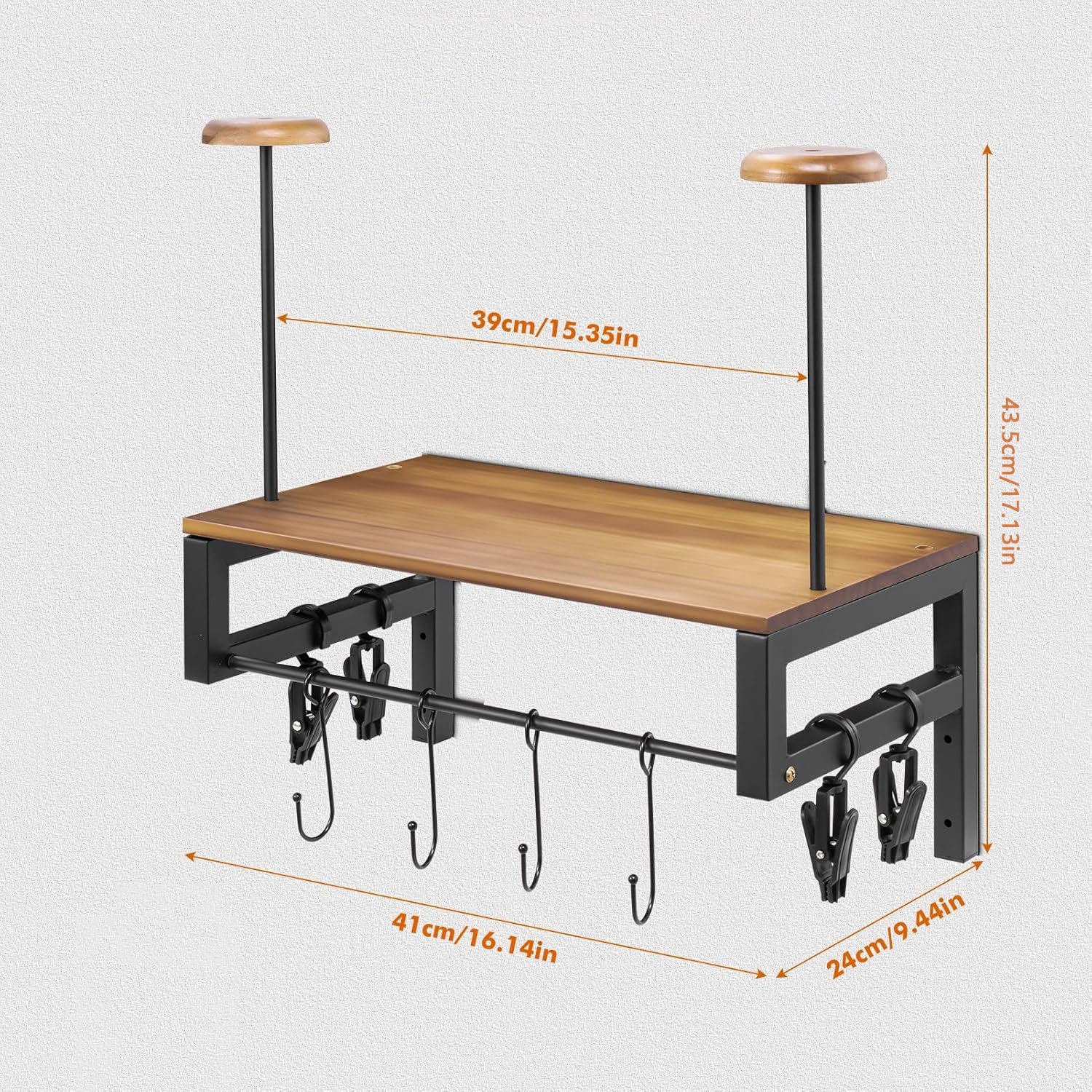 🌋- Виготовленийз високоякісного заліза та дерева, він міцний, має вантажопідйомність до 80 фунтів, глянцевий, водонепроникний та стійкий до іржі, а унікальне зерно дерева додає природної краси загальному дизайну.