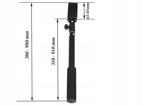 Алюмінієва тримача селфі-палки з регульованою довжиною від 380 до 980 мм і плавне регулювання дозволяє отримати оптимальну довжину руки.