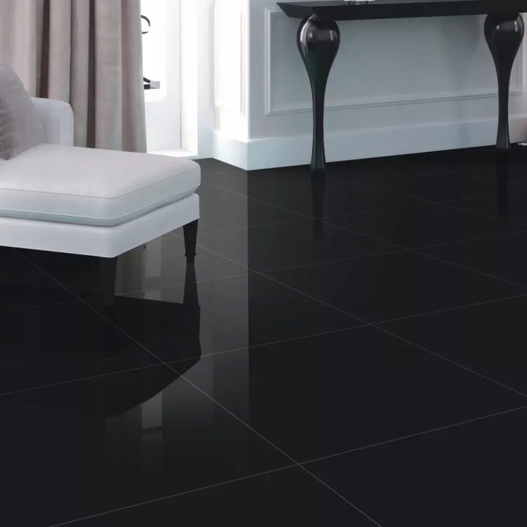 Універсальна підлогова плитка для ванної кімнати, чорний керамограніт, глянець, 60х60 см