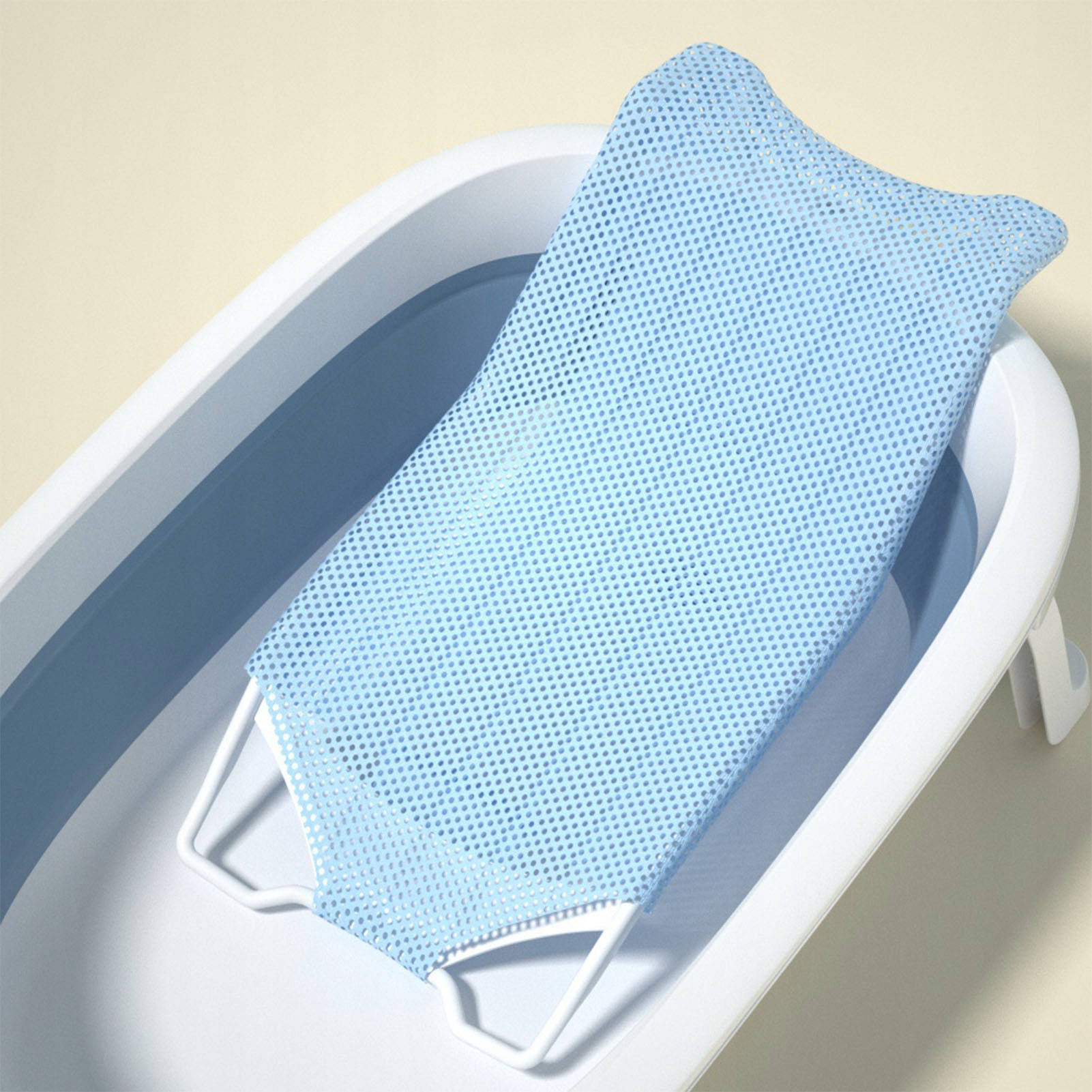 1. Безпечно та зручно: дитяча підставка для ванни виготовлена з високоякісної пластикової сітки та підставок для забезпечення комфорту та безпеки дитини у ванні.