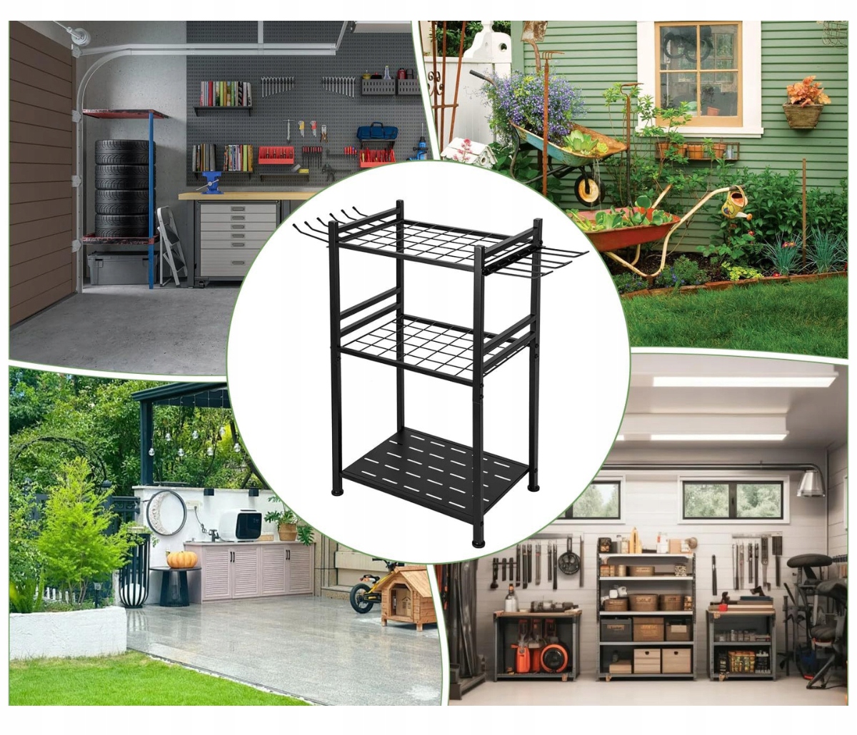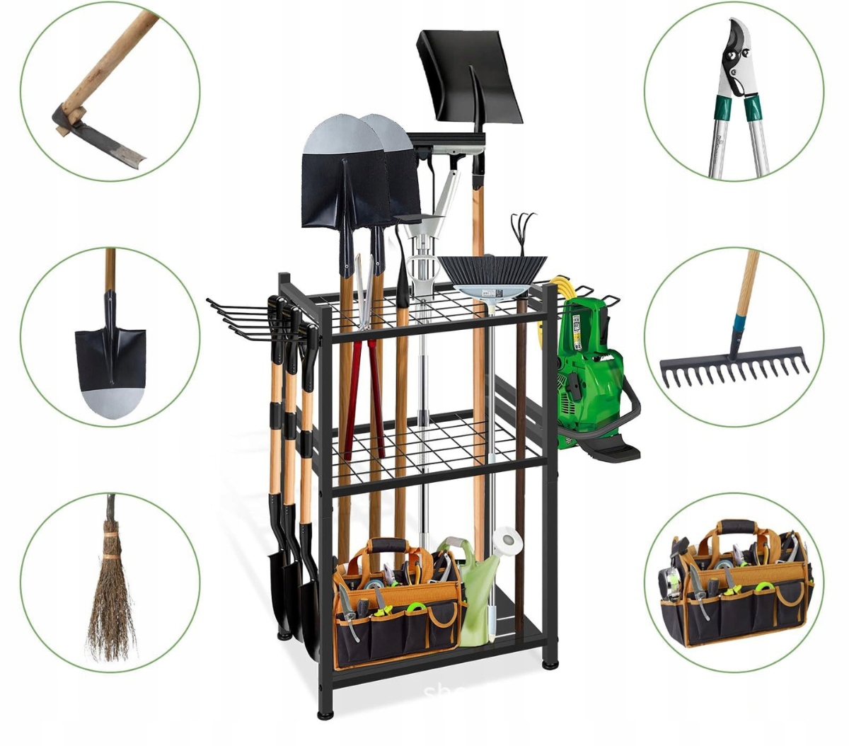 Міцна і функціональна підставка для садового інструменту, виготовлена з міцної вуглецевої сталі, полегшує зберігання лопат, граблів, віників і лопат. Завдяки компактним розмірам 43 × 30 × 81,3 см він поміститься в гаражі, сараї або саду, забезпечуючи порядок і легкий доступ до обладнання. Ідеально підходить для садівників, садівників і ентузіастів DIY.
