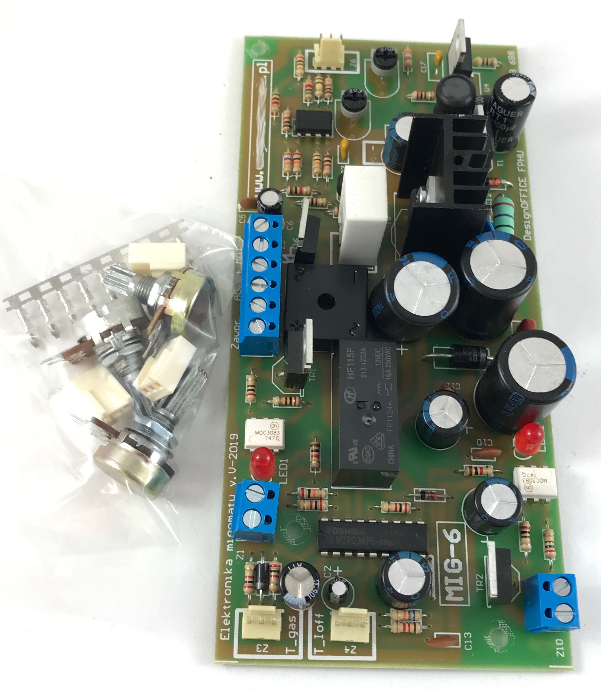 Встановлюється на будь-який зварювальний напівавтомат із класичним трансформатором. Даний модуль відрізняється від інших модулів мігомат нашого виробництва тим, що не потребує живлення 230В. Завдяки цьому його можна використовувати, наприклад, у зовнішньому пристрої подачі дроту, до якого зазвичай не подається мережева напруга, і тому використання класичних систем, що потребують джерела живлення 230 В, є складним або неможливим. Стандартний варіант системи розрахований на роботу з фідером, в якому двигун живиться напругою від 12В до 60В, а трансформатор, що живить двигун, повинен мати таку ж напругу. У стандартній версії система може працювати з потужністю двигуна до 10А. Плата PROFI MIG-6 має такі ж функції та параметри, як описана вище плата «Migomat 4», з тією різницею, що тут немає механічних реле для включення головного трансформатора та газового електромагнітного клапана. Ці реле були замінені на напівпровідникові перемикачі, що збільшує термін служби системи. Крім того, система має більший радіатор для силового транзистора, який керує двигуном подачі.