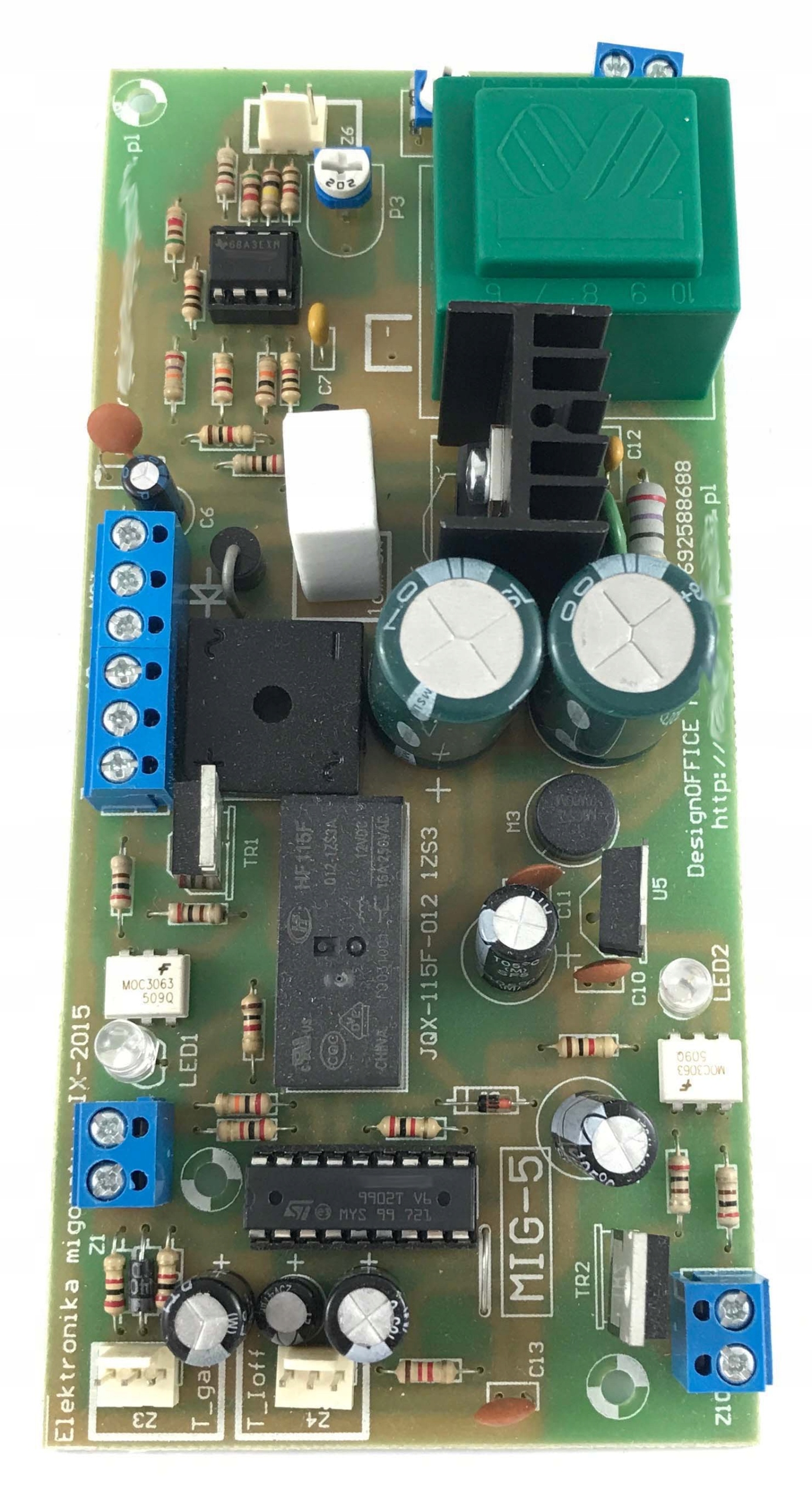 Встановлюється на будь-який зварювальний напівавтомат із класичним трансформатором. Плата PROFI MIG-5 має такі ж функції та параметри, як описана вище плата «Migomat 3», з тією різницею, що тут немає механічних реле для включення головного трансформатора та газового електромагнітного клапана. Ці реле були замінені на напівпровідникові перемикачі, що збільшує термін служби системи. Крім того, система має більший радіатор для силового транзистора, який керує двигуном подачі.