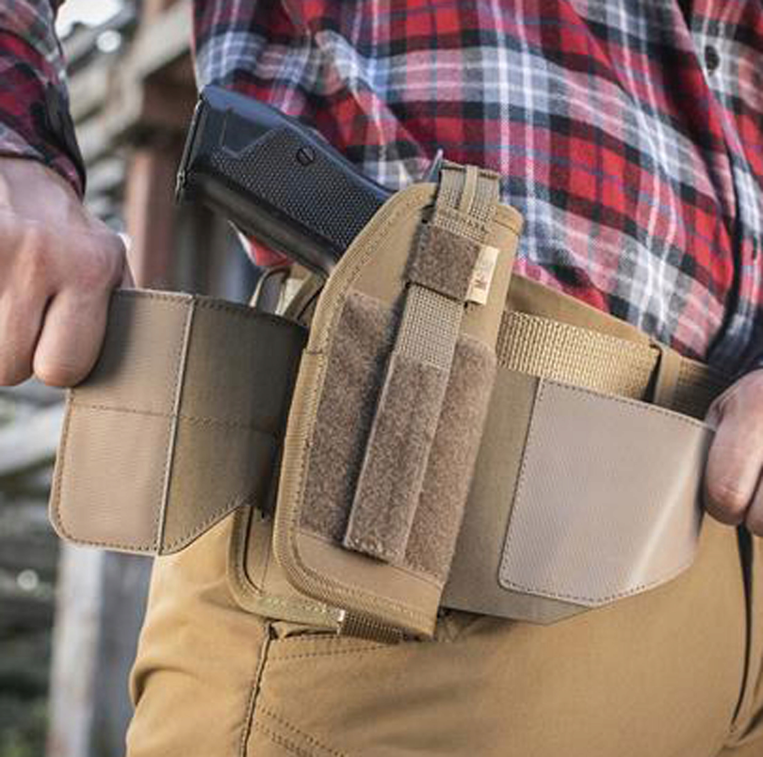 Регульована стрічка Mil-Spec з кнопкою YKK і липучкою відповідає за стабільне кріплення пістолета в кобурі. Кобура кріпиться на поясі за допомогою інтерфейсу MOLLE, що додатково сприяє швидкому витягуванню зброї.