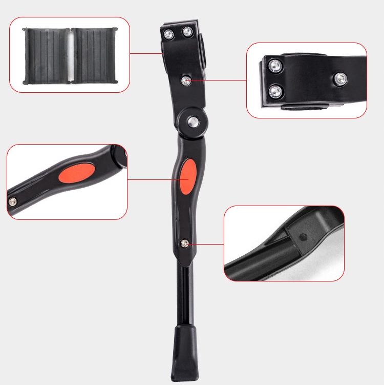 Алюмінієвий матеріал: бічна підтримка велосипеда виготовлена з відмінного алюмінієвого матеріалу, який стійкий до зносу та подряпин, стабільної та міцної. Подушки, що не належать до ковзання: на велосипедній підставці є не -слизні прокладки, які запобігають ковзанню велосипеда на мокрі дороги, а також допомагають підтримувати рівновагу на нерівній поверхні. Легко припаркуватися: задня бічна стійка велосипеда може полегшити паркування велосипеда, а не просто опустити його на землю або шукати щось, на що можна покластися. Застосовуваний розмір: Підтримка велосипедів підходить для велосипедів 24-26 дюймів, виберіть потрібний розмір підставки залежно від розміру велосипеда. Регульована довжина: Велосипедна стійка має висувну структуру, довжина регулюється і може бути скорочена, коли вона не використовується, це не вплине на нормальне водіння.