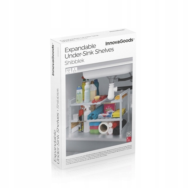Висувна полиця Shibblek InnovaGoods під раковину — ідеальне рішення для максимального використання простору під раковиною, що дозволяє організувати та впорядковано зберігати посуд і засоби для чищення. Він також стане в нагоді на кухні для зберігання каструль, сковорідок, каструль тощо.