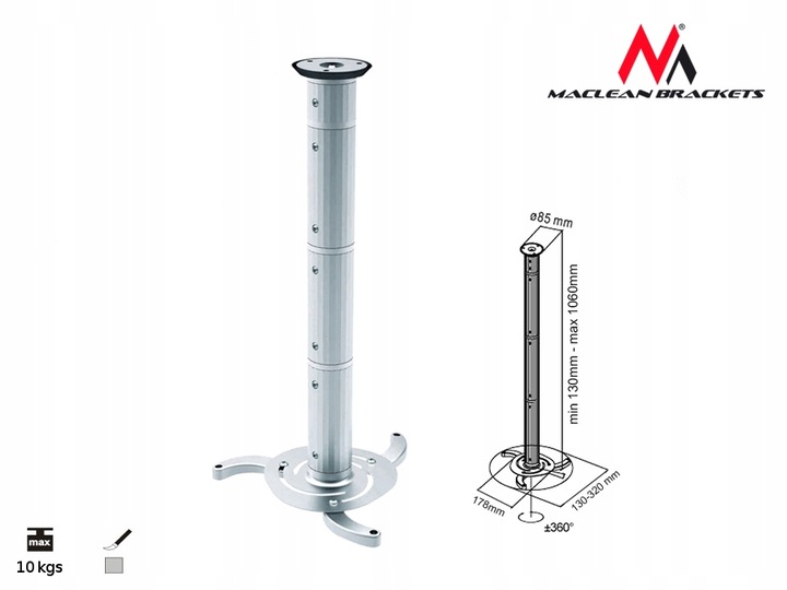 - Кріплення на стелю для проектора 10кг Maclean MC-517 S silver