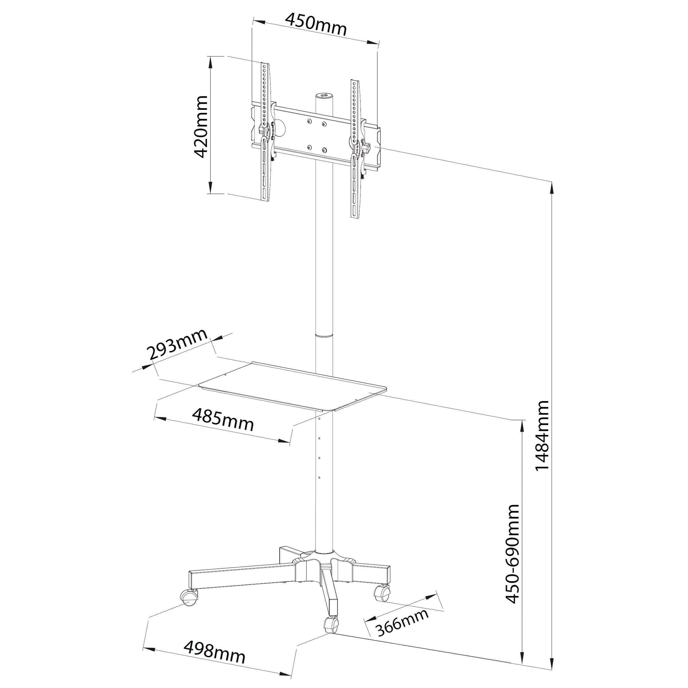 - регульована полиця для обладнанняAV – вантажопідйомність до 4 кг