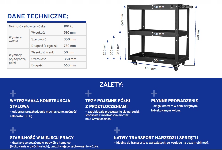 Візіки для інструментів з вантажною ємністю 100 кг, розробленої для використання в веб -сайтах, семінарах та гаражах.
