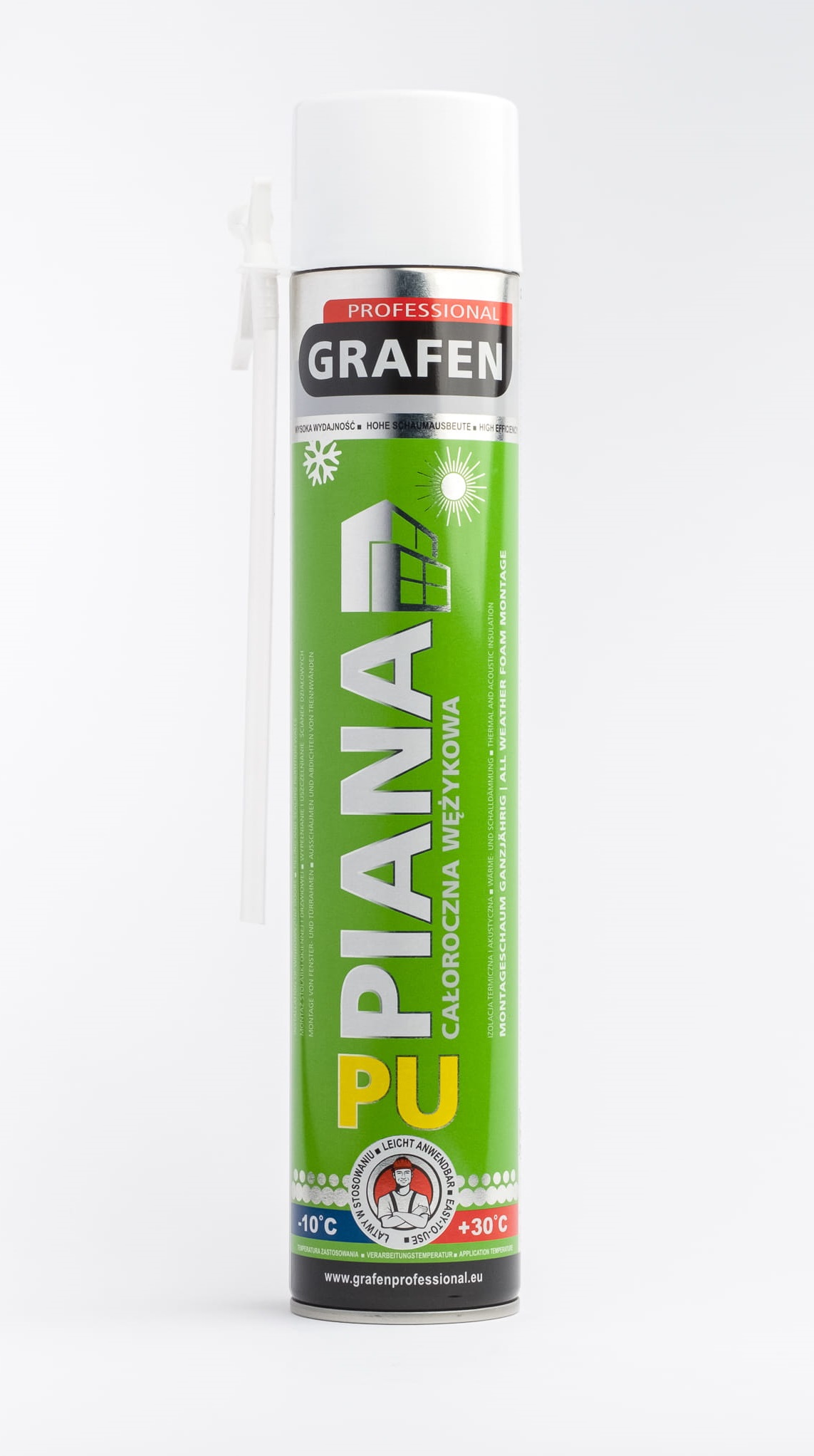УНІВЕРСАЛЬНА МОНТАЖНА ПІНА ДЛЯ ТРУБ, ВСЕСЕЗОННА ПОЛІУРЕТАНОВА, ДЛЯ ДЖЕКТОВ 750 МЛ GRAPHENE