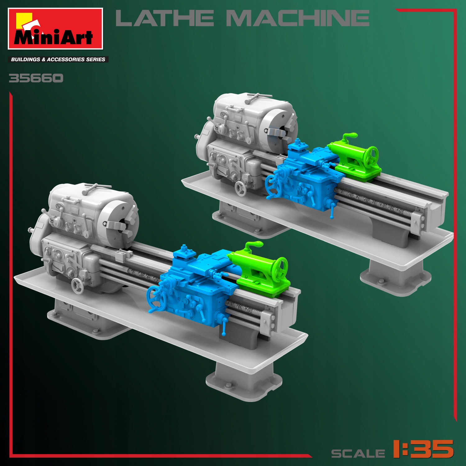 Пластикова модель для склеювання за шкалою 1:35, універсальних верстатів для верстатів, призначена для обробки об'єктів найчастіше з обертальним корпусом. Інструмент для обробки, як правило, є ножем Токарського, інструментом для свердління або різьблення. Обробка на токарному верстаті називається прокаткою.