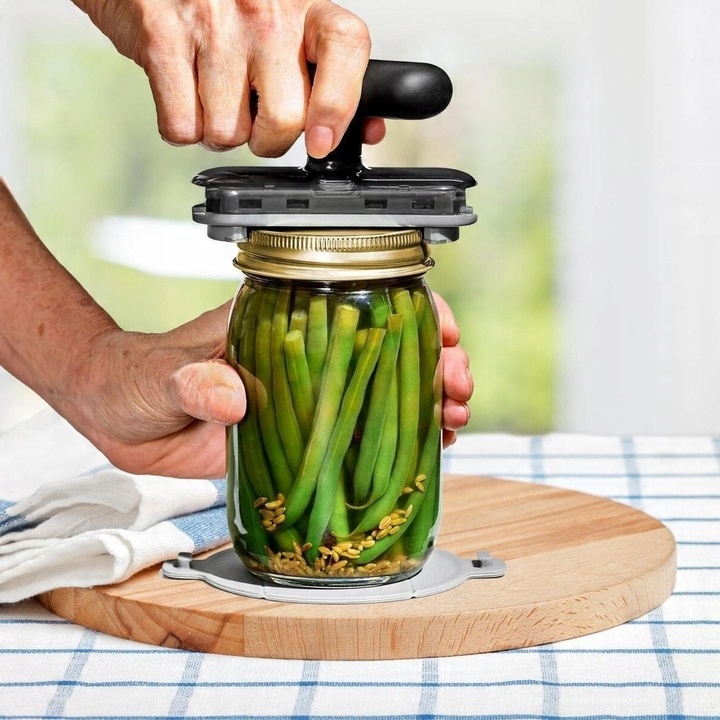 - оснащеним зубами з нержавіючої сталі b> які захоплюють кришки, щоб зменшити тиск на руки та зап’ястки,